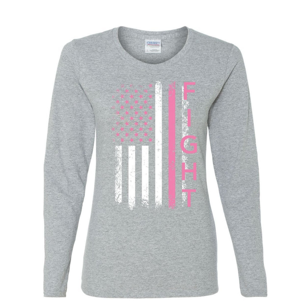FIGHT CANCER PINK FLAG long sleeve t-shirt breast cancer awareness gray