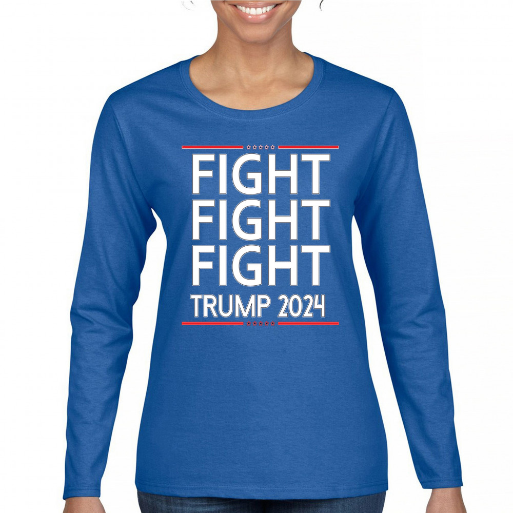 Show your Trump 2024 support with this bold "Fight Fight Fight" design. Perfect for rallies and everyday wear. Stand with America!
