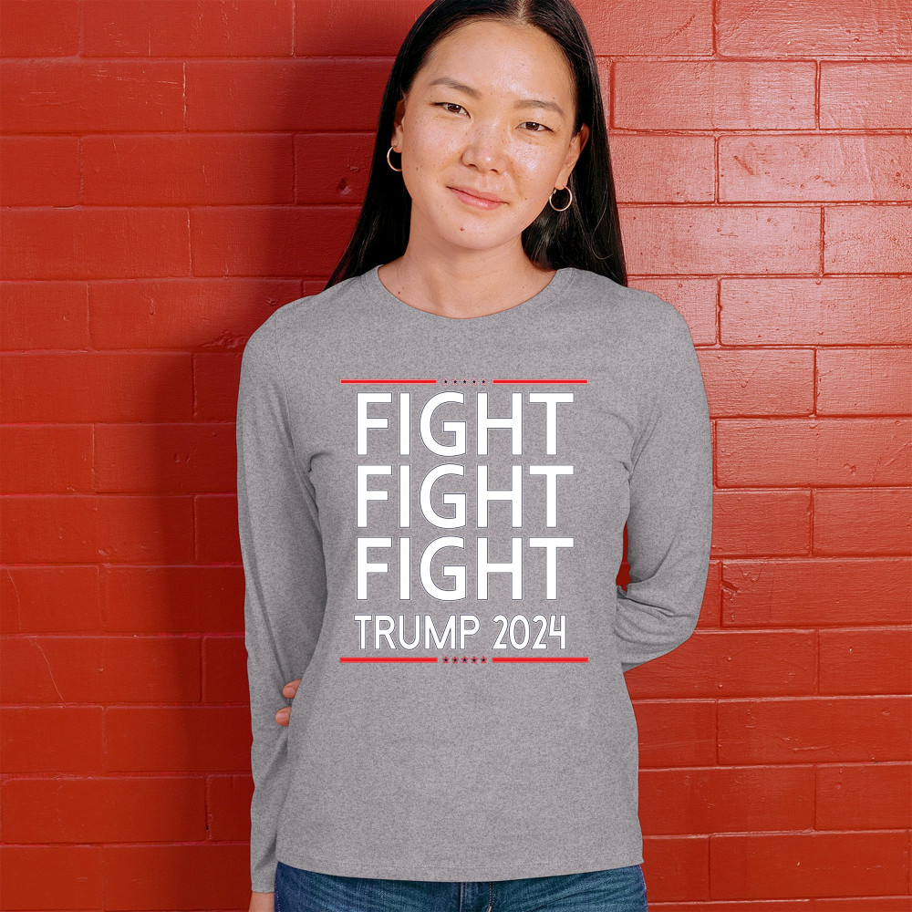 Show your Trump 2024 support with this bold "Fight Fight Fight" design. Perfect for rallies and everyday wear. Stand with America!