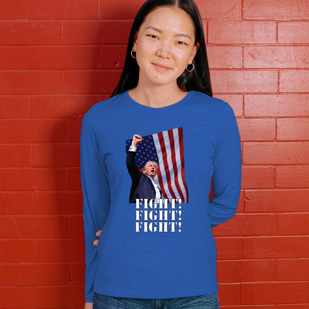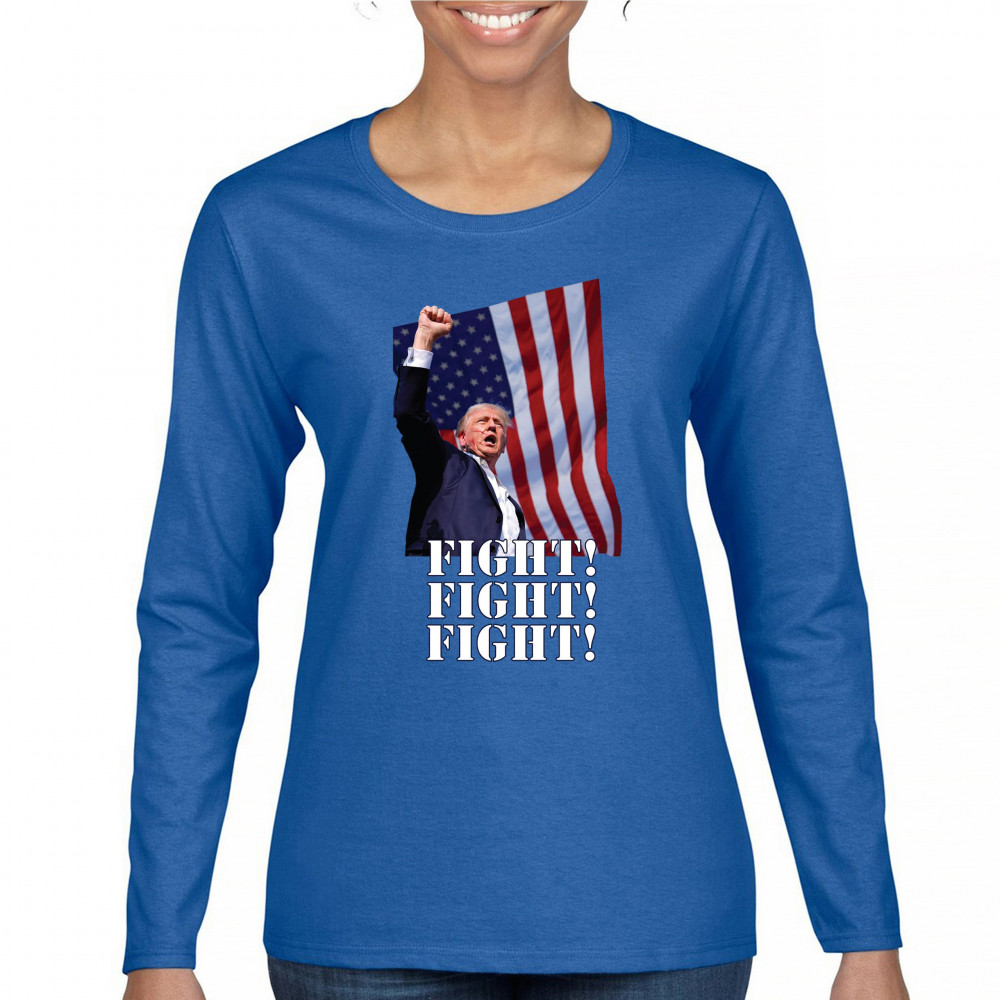 Show your support for Trump with this powerful design featuring him in front of the American flag. Perfect for rallies and daily wear.