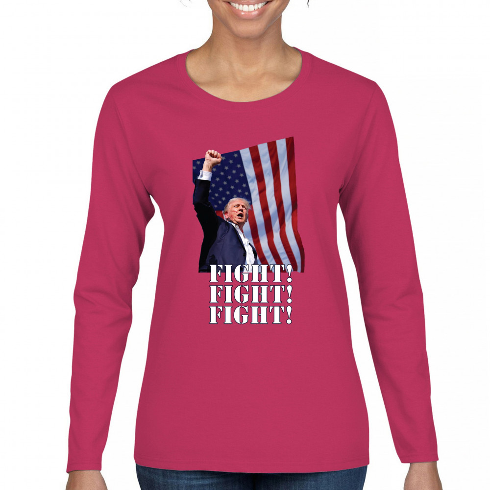 Show your support for Trump with this powerful design featuring him in front of the American flag. Perfect for rallies and daily wear.