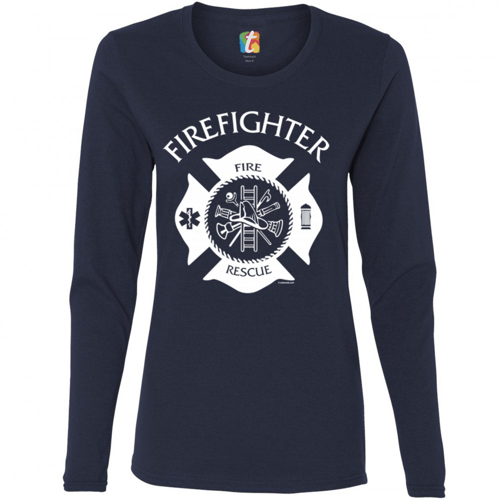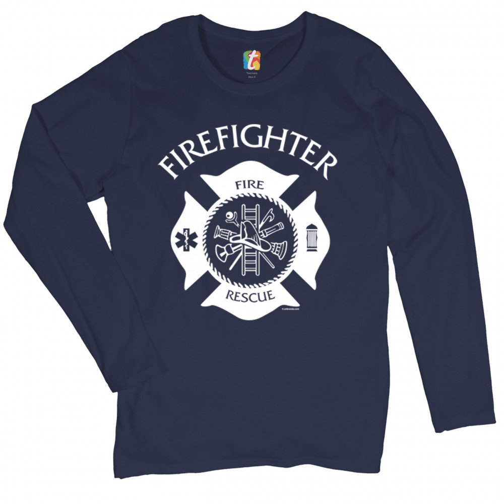 FIREFIGHTER EMBLEM women's long sleeve t-shirt fire and rescue first responders navy blue