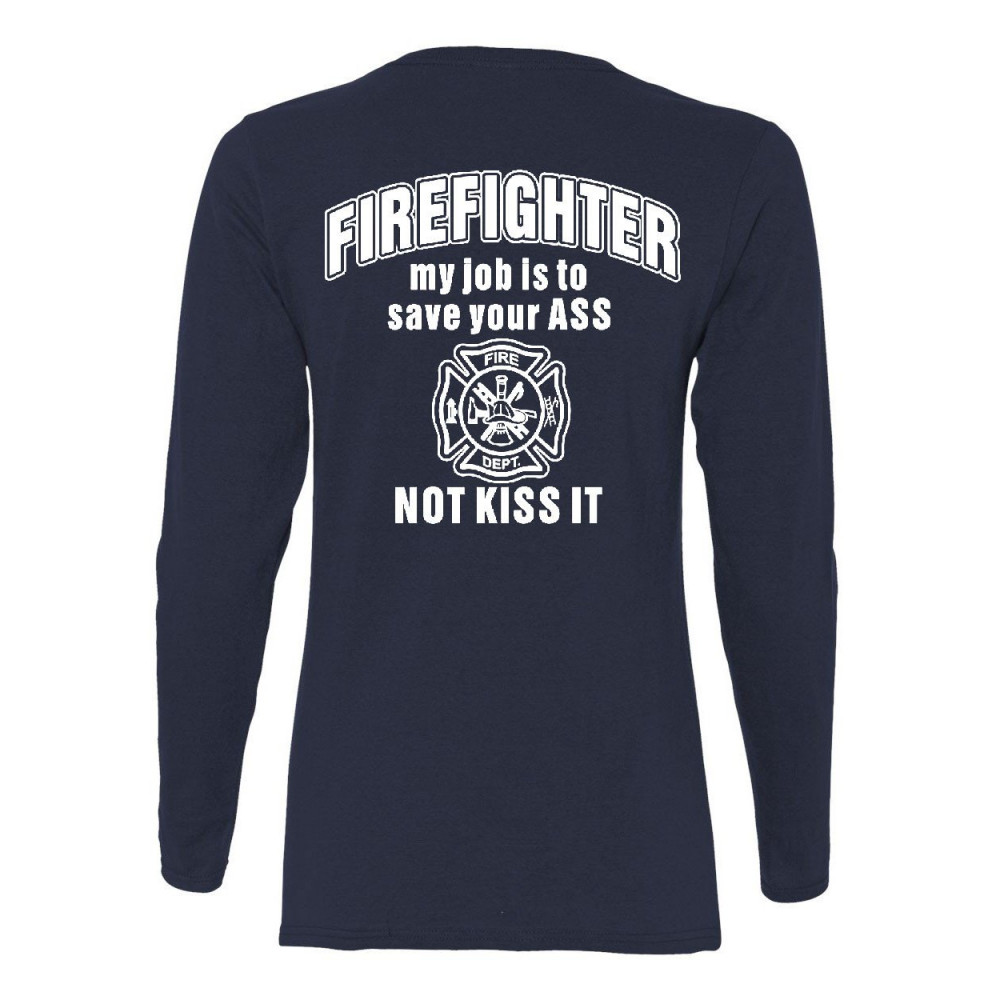FIREFIGHTER MY JOB IS TO SAVE YOUR ASS long sleeve t-shirt funny navy blue