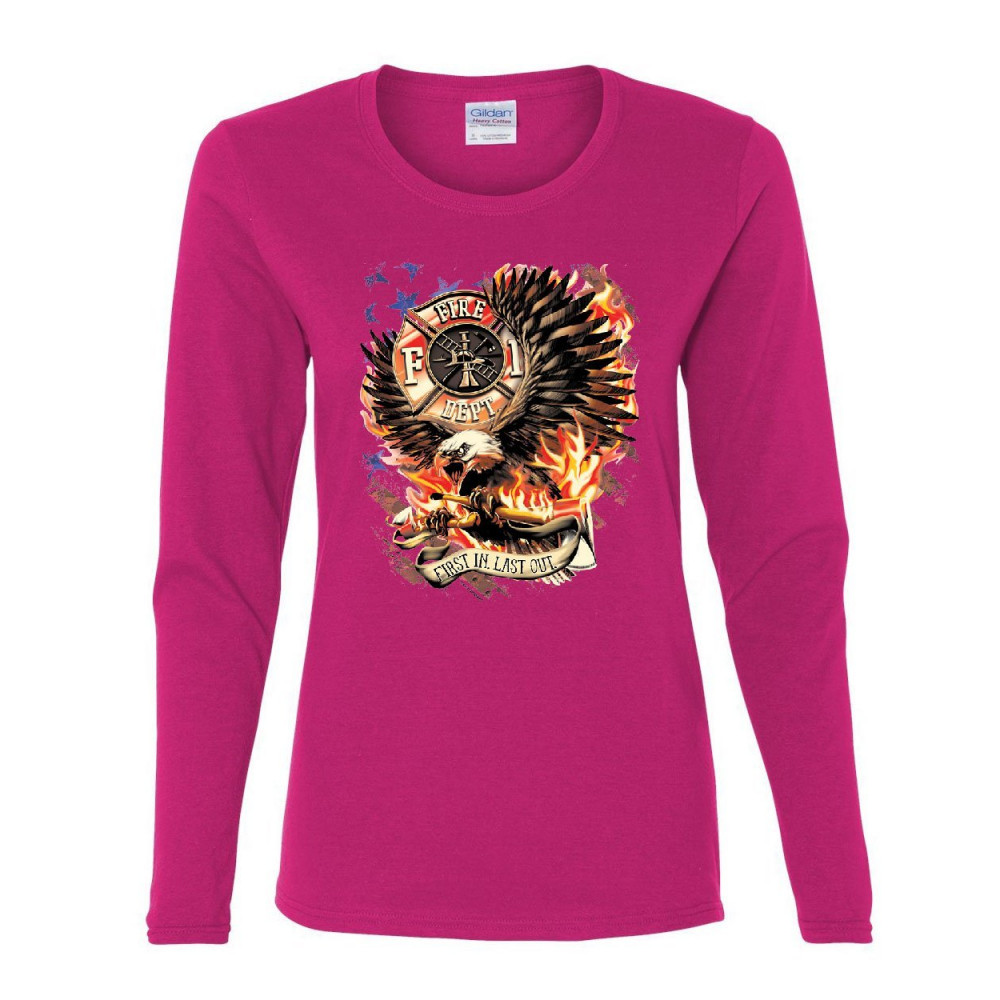 FIREFIGHTER FIRST IN LAST OUT first in last out women's long sleeve tee fire & rescue fd american firefighter pink
