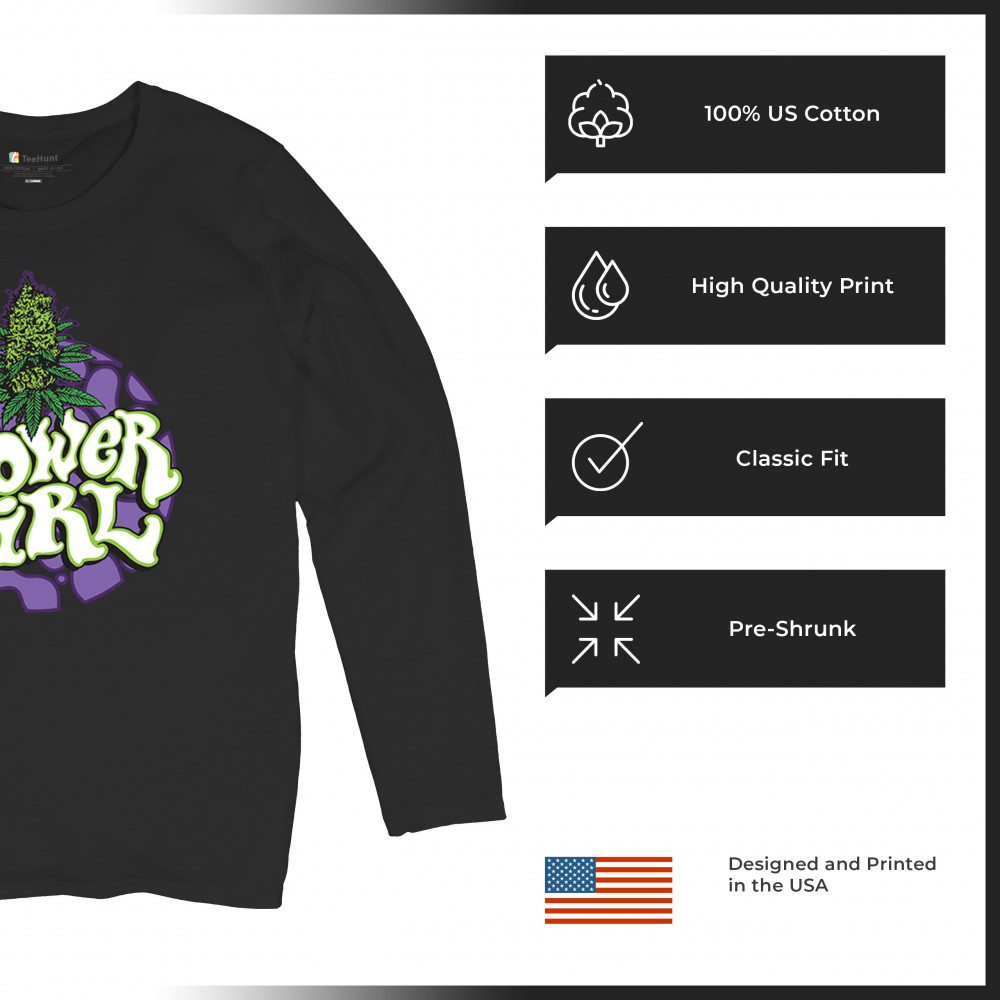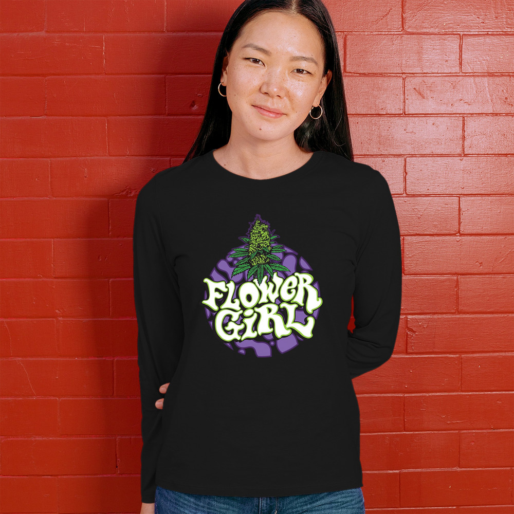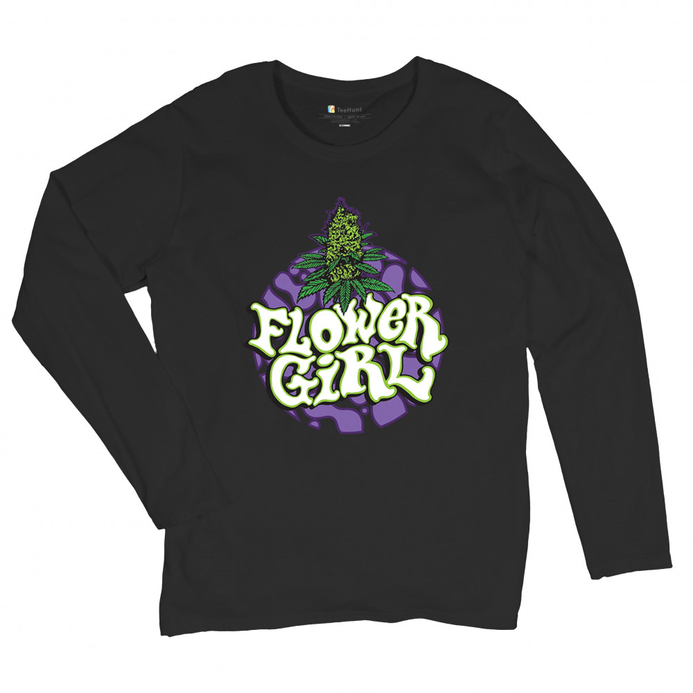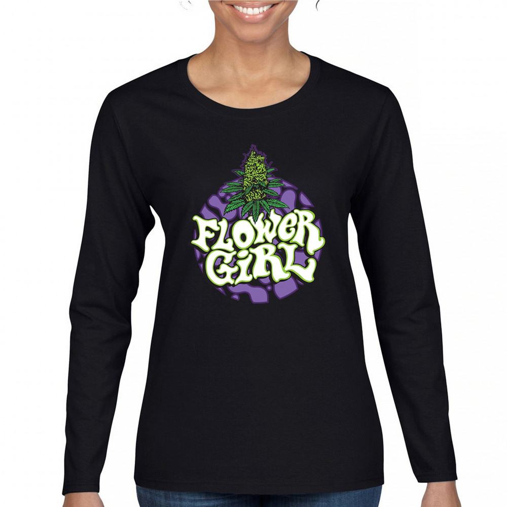 FLOWER GIRL WEED women's long sleeve t-shirt stoner vibe 420 cannabis marijuana black