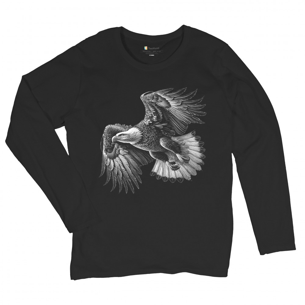 FLYING EAGLE PORTRAIT women's long sleeve t-shirt soaring bird wildlife nature black