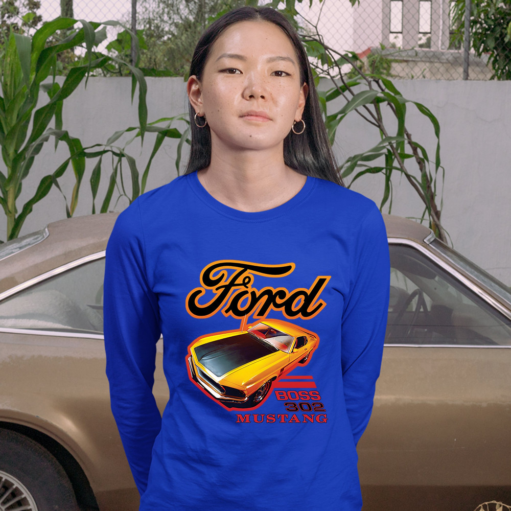 FORD BOSS 302 MUSTANG women's long sleeve t-shirt american muscle car licensed royal blue