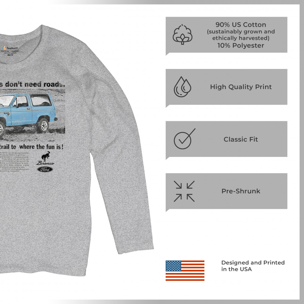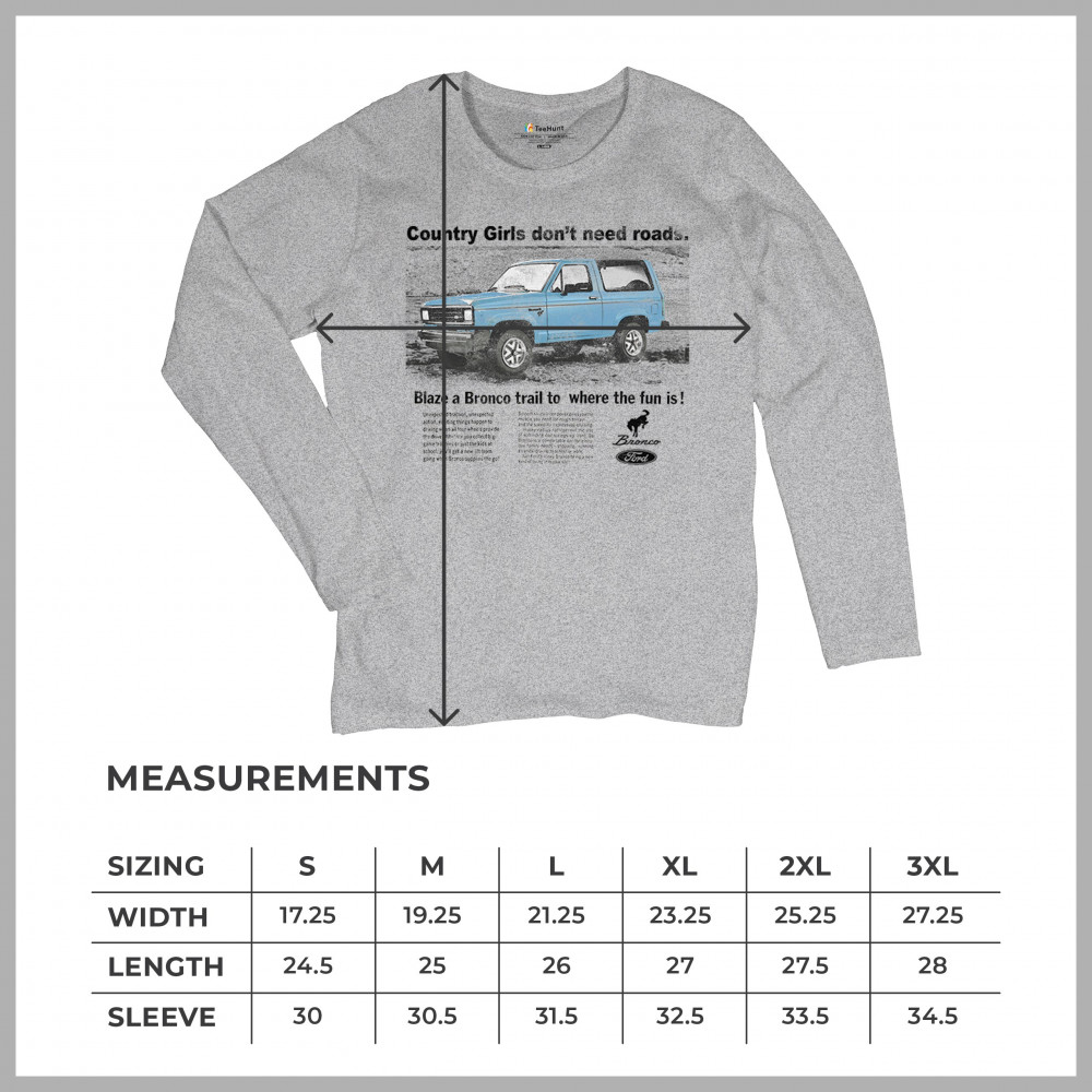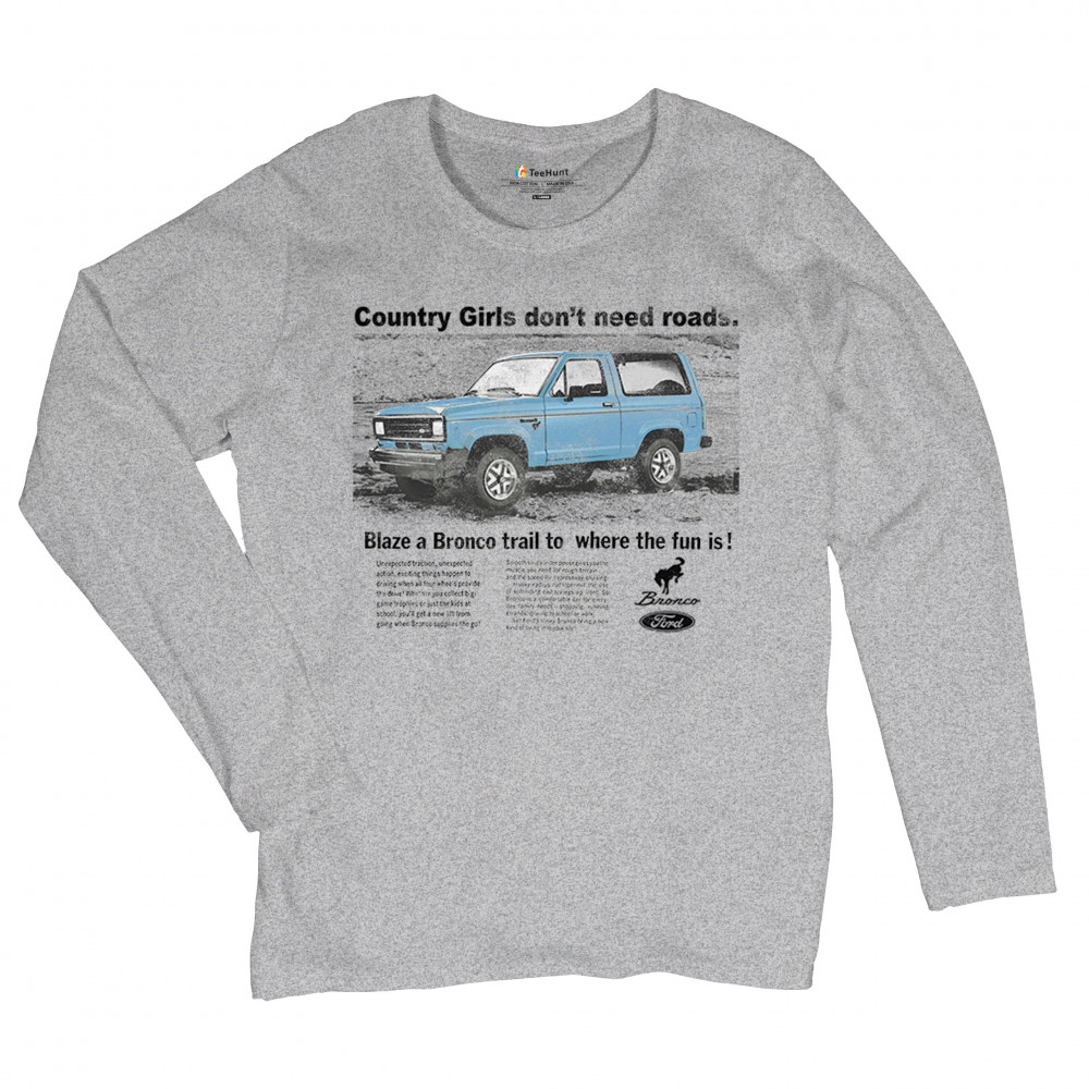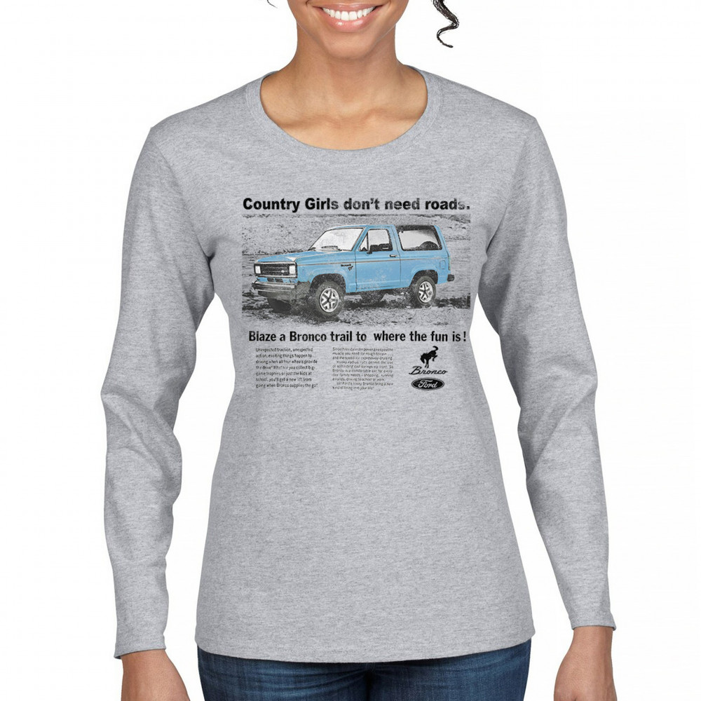 FORD BRONCO COUNTRY GIRLS DON'T NEED ROADS women's long sleeve t-shirt truck gray