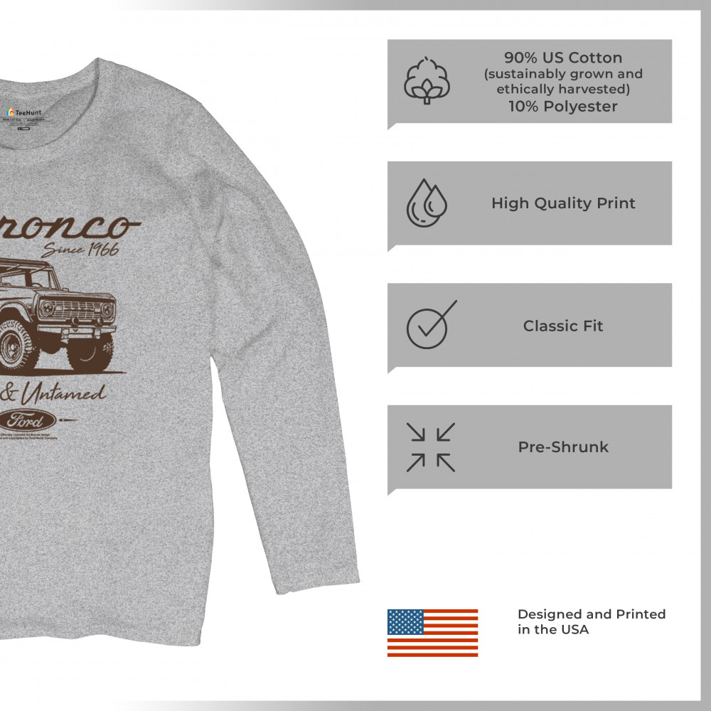 Discover the perfect gift for Ford Bronco enthusiasts with this officially licensed apparel. Highlighting "Bronco Since 1966" and "Wild and Untamed," the design captures the rugged charm of this iconic off-road SUV. Ideal for classic car lovers, outdoor explorers, and 4x4 adventurers, this vintage collectible represents the adventure-ready spirit of the Bronco.