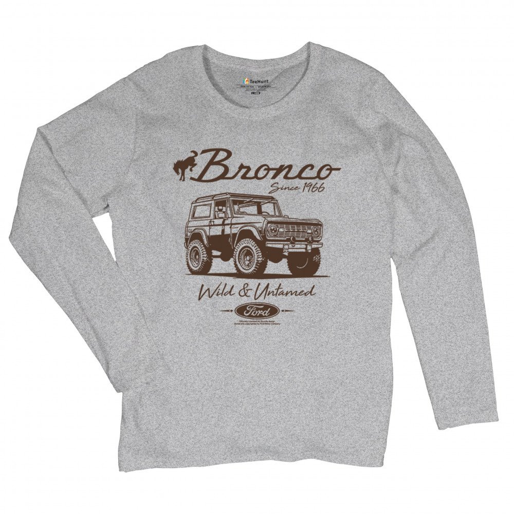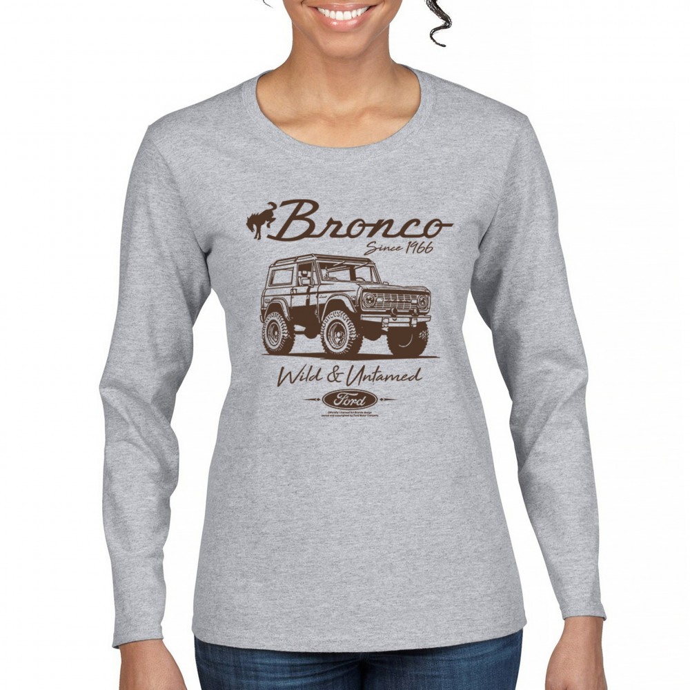 FORD BRONCO WILD AND UNTAMED SINCE 1966 women's long sleeve t-shirt off-road gray