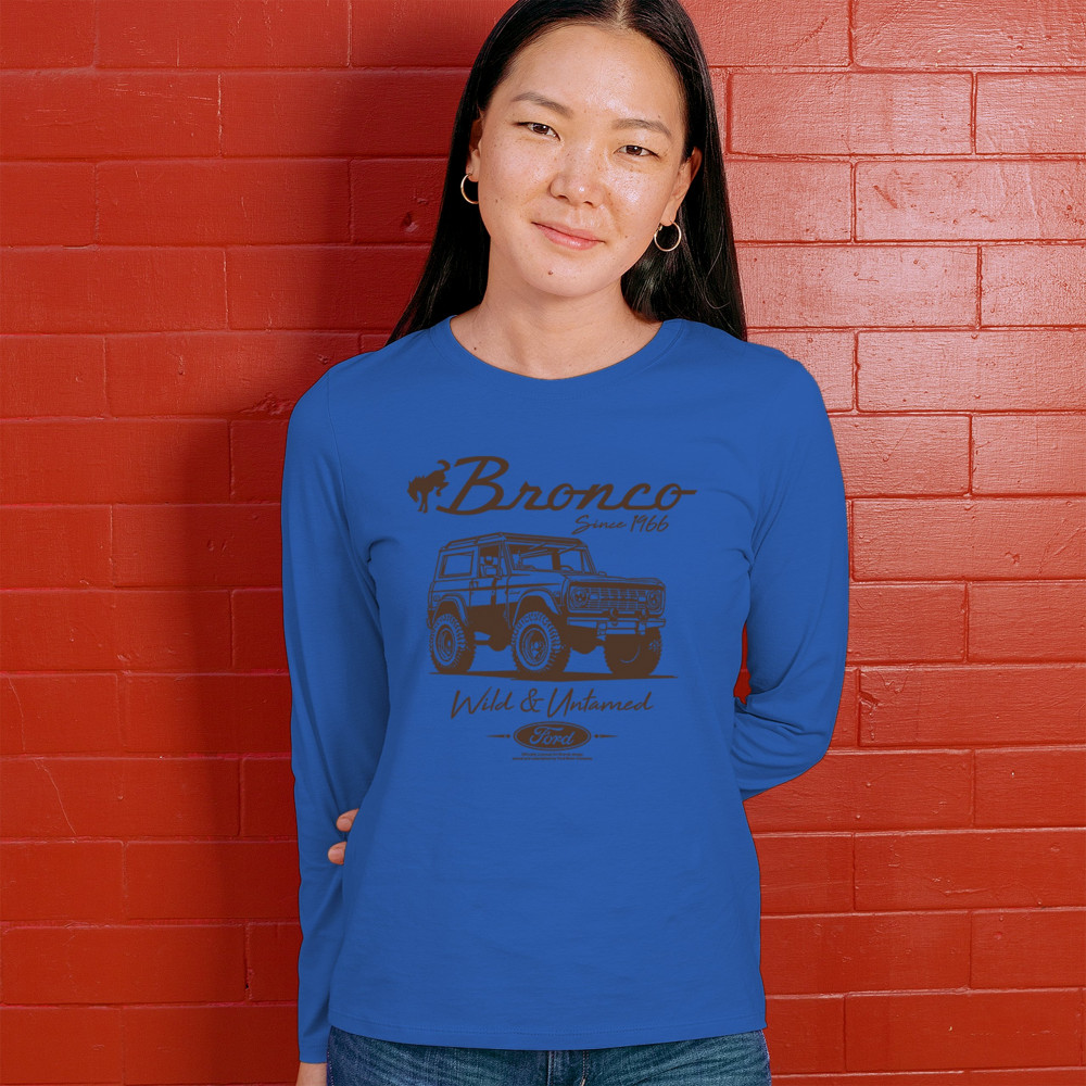 Discover the perfect gift for Ford Bronco enthusiasts with this officially licensed apparel. Highlighting "Bronco Since 1966" and "Wild and Untamed," the design captures the rugged charm of this iconic off-road SUV. Ideal for classic car lovers, outdoor explorers, and 4x4 adventurers, this vintage collectible represents the adventure-ready spirit of the Bronco.