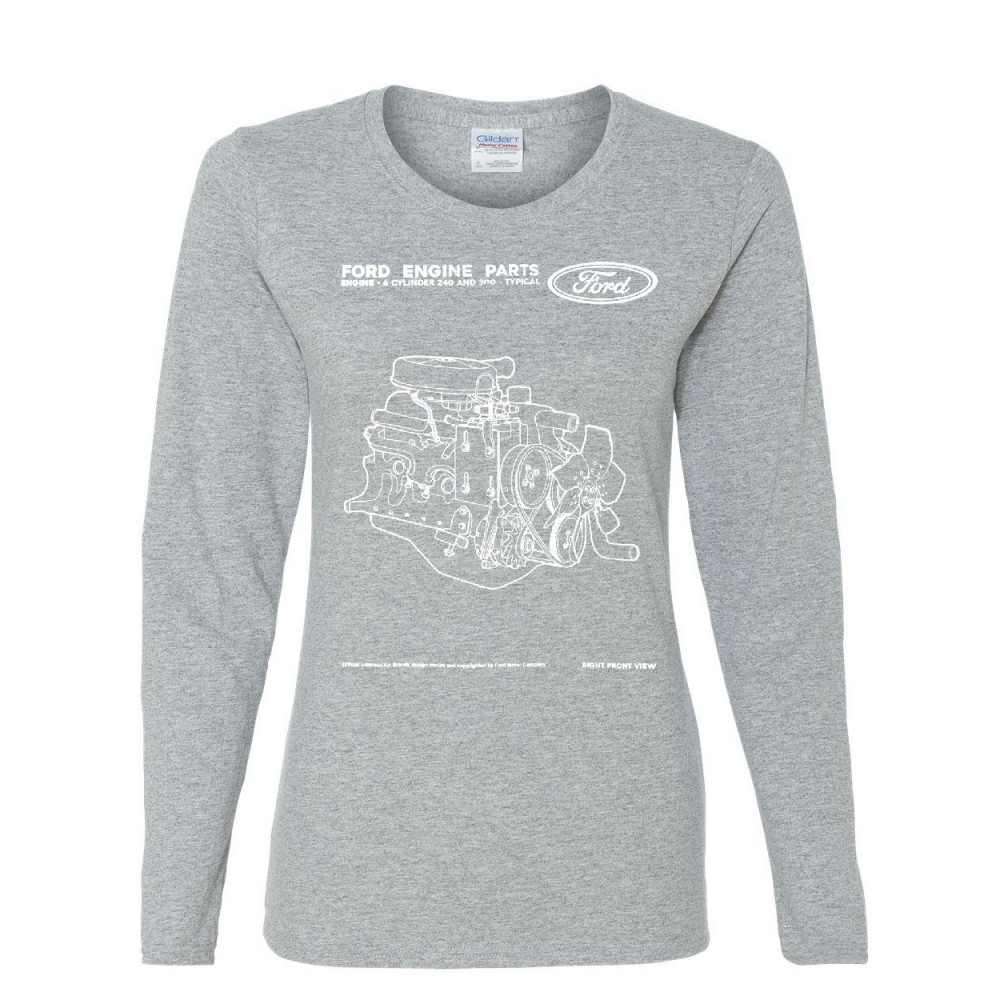 FORD ENGINE PARTS women's long sleeve t-shirt 6 cylinder motor gray