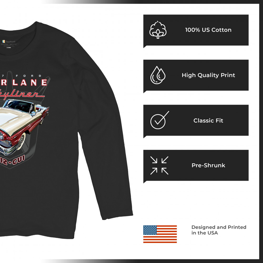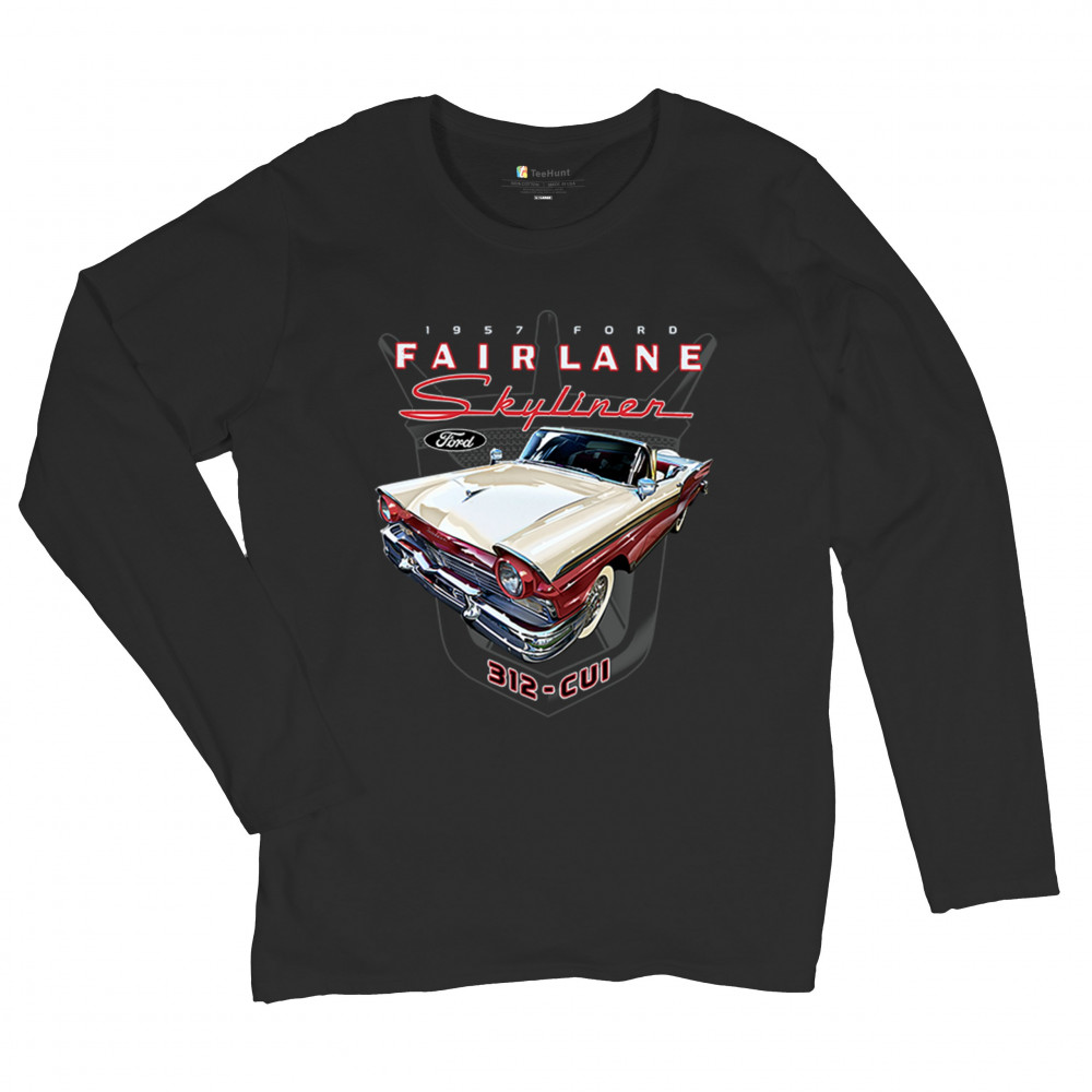 FORD FAIRLANE SKYLINER CREST women's long sleeve t-shirt 1957 vintage classic black