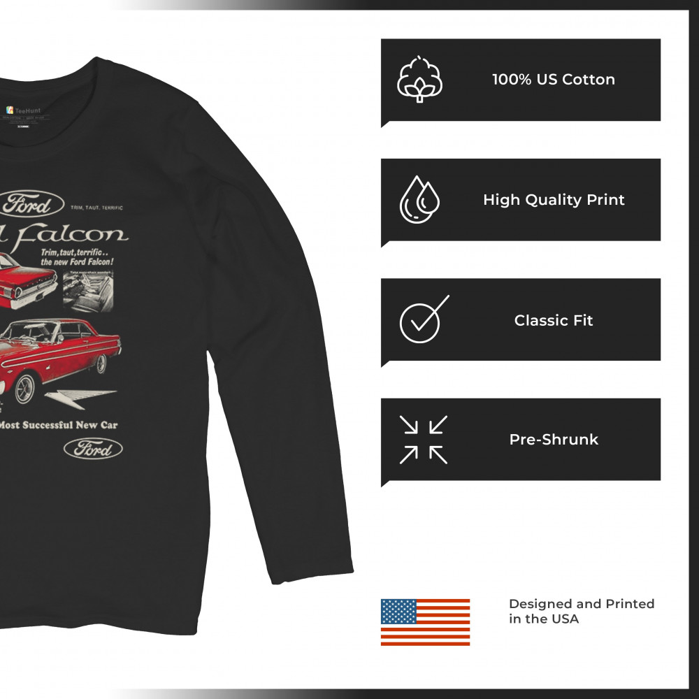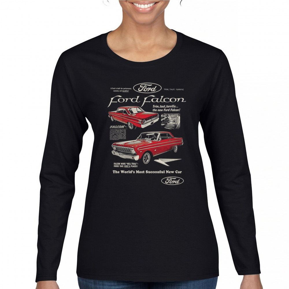 FORD FALCON RETRO POSTER women's long sleeve t-shirt 1960-70s classic muscle car black