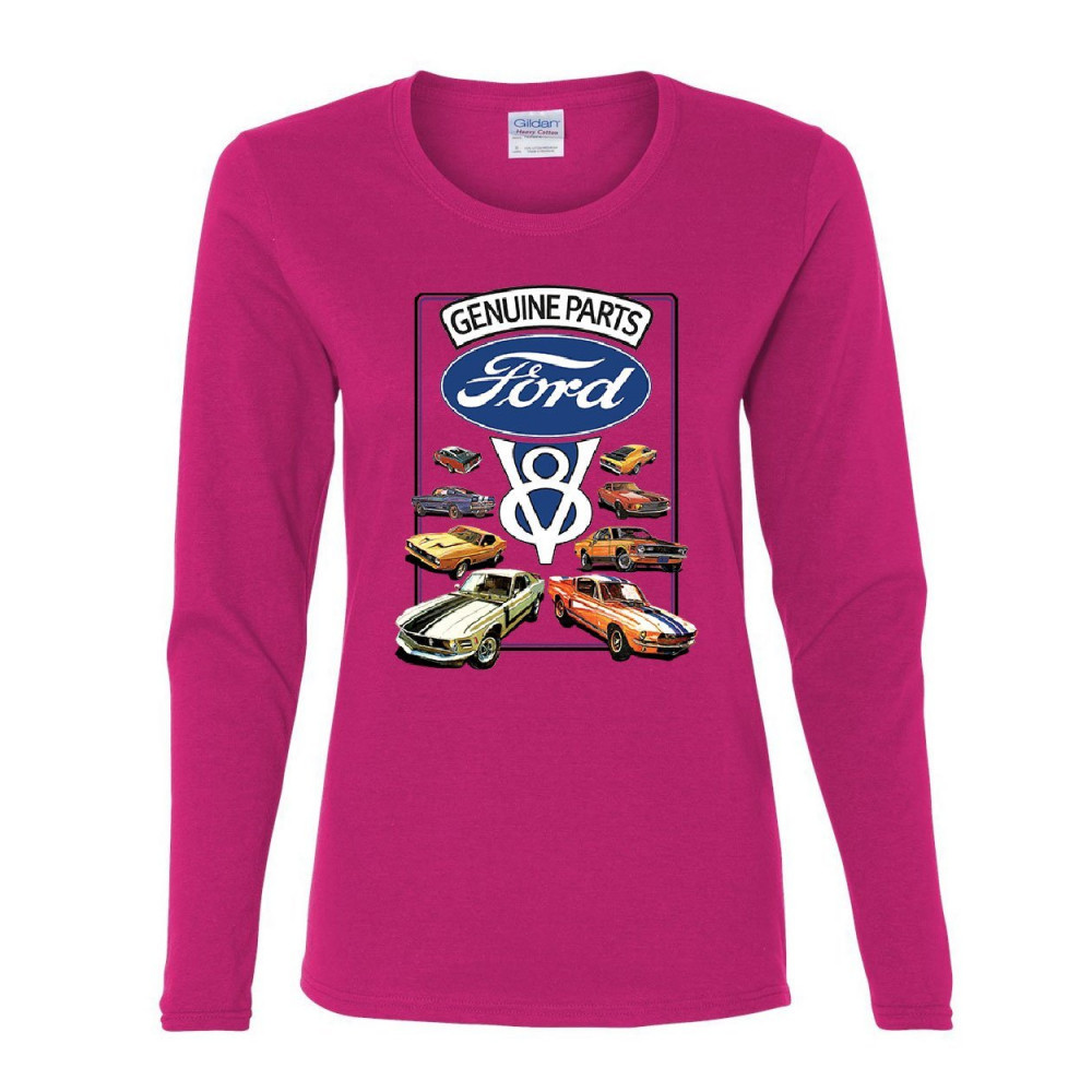 FORD GENUINE PARTS women's long sleeve tee american classic muscle cars v8 motor hot pink