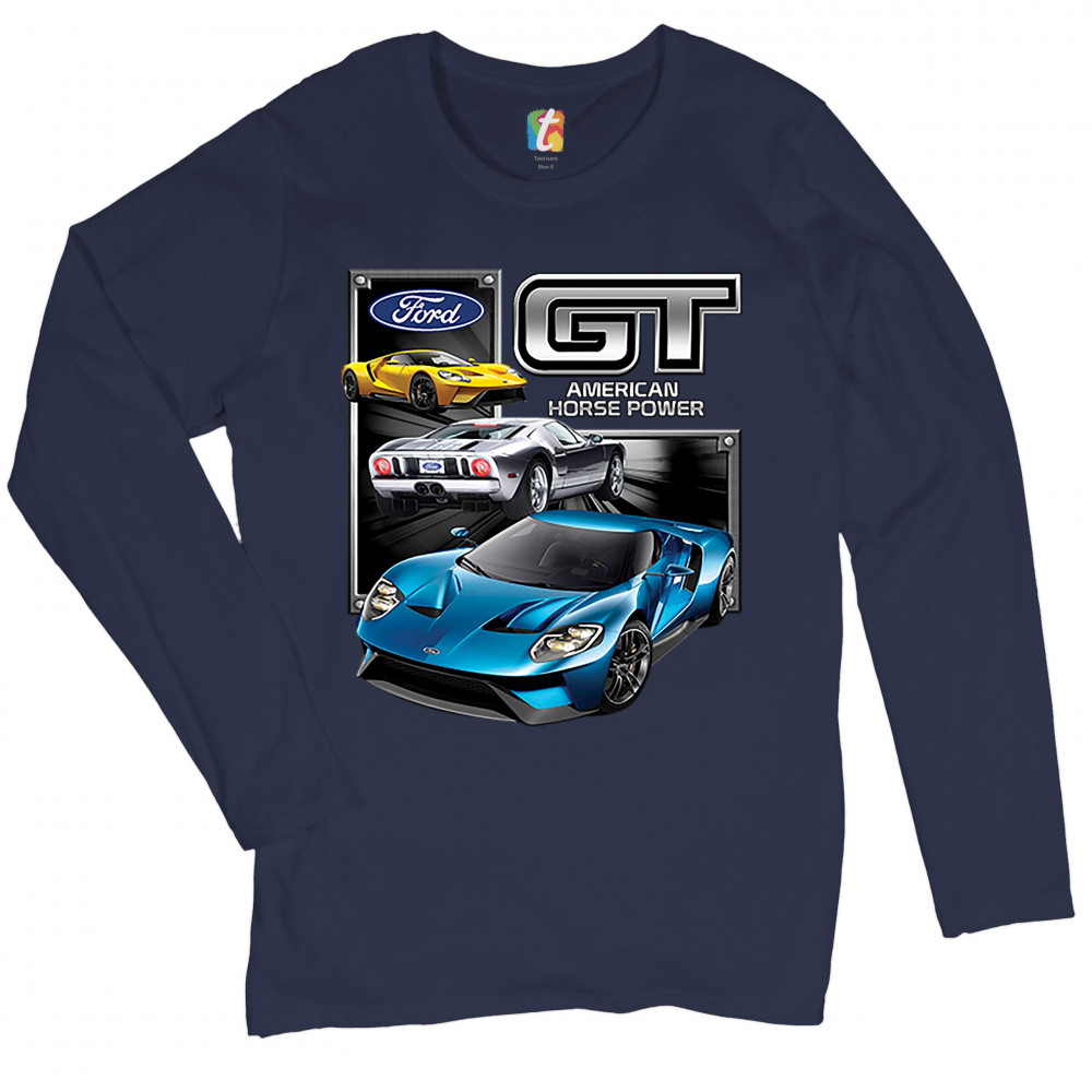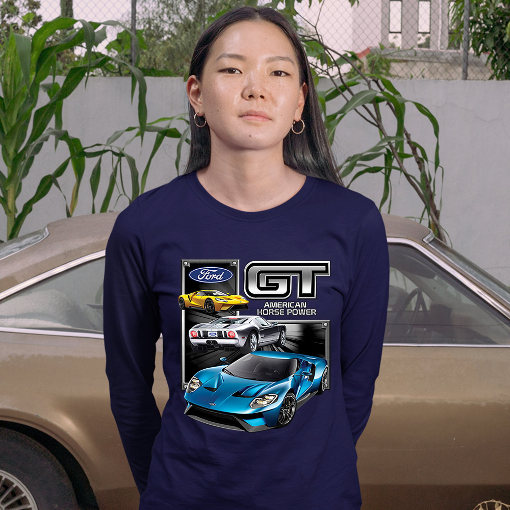 FORD GT AMERICAN HORSE POWER women's long sleeve t-shirt race car licensed navy blue