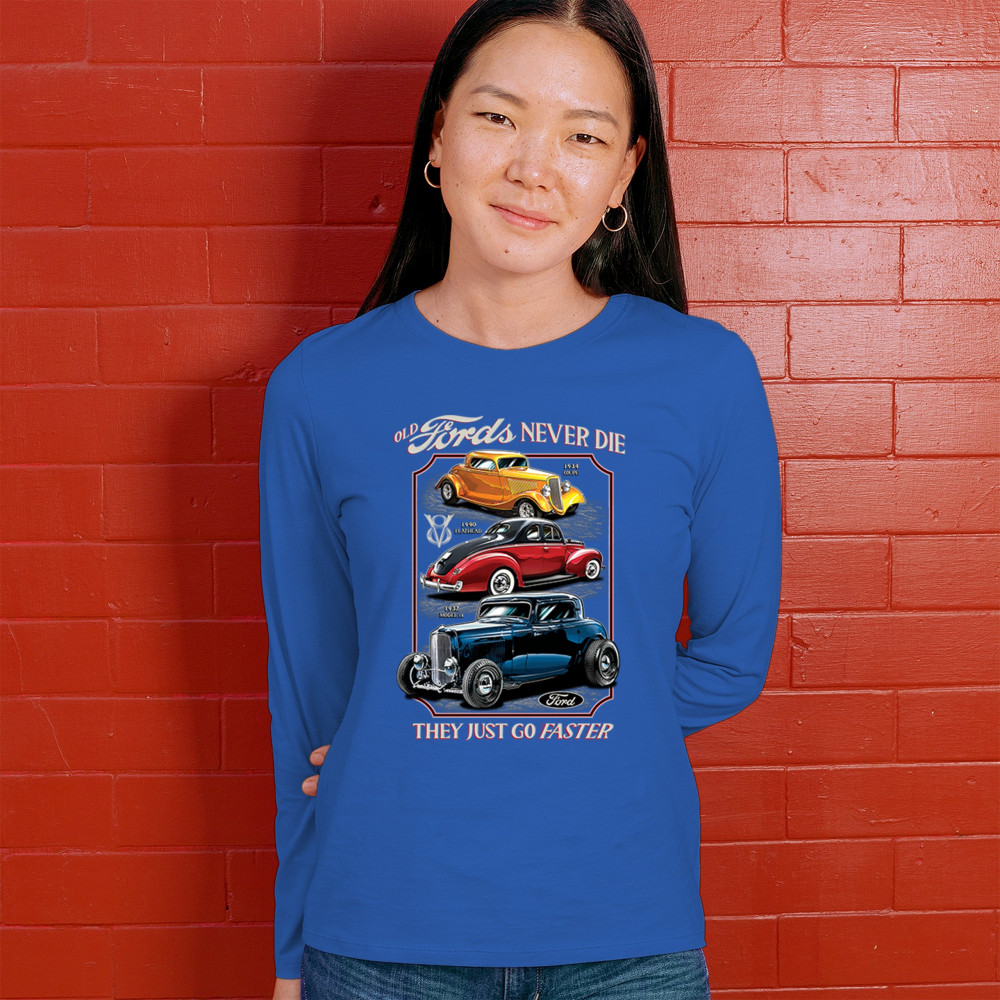 This retro design features three legendary Ford hot rods from the 1930s and 1940s, boldly rendered in a tribute to American street rod history. Ideal for muscle car lovers, vintage performance fans, and classic car culture enthusiasts who appreciate timeless speed. A must-have for cruise nights, garage hangs, and car shows.