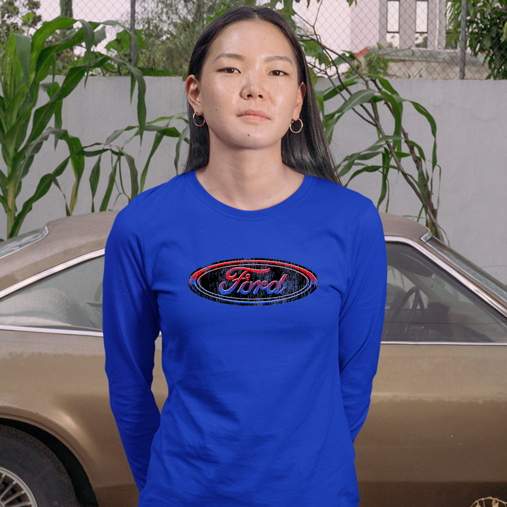 FORD MOTOR COMPANY LOGO women's long sleeve t-shirt american made cars licensed royal blue
