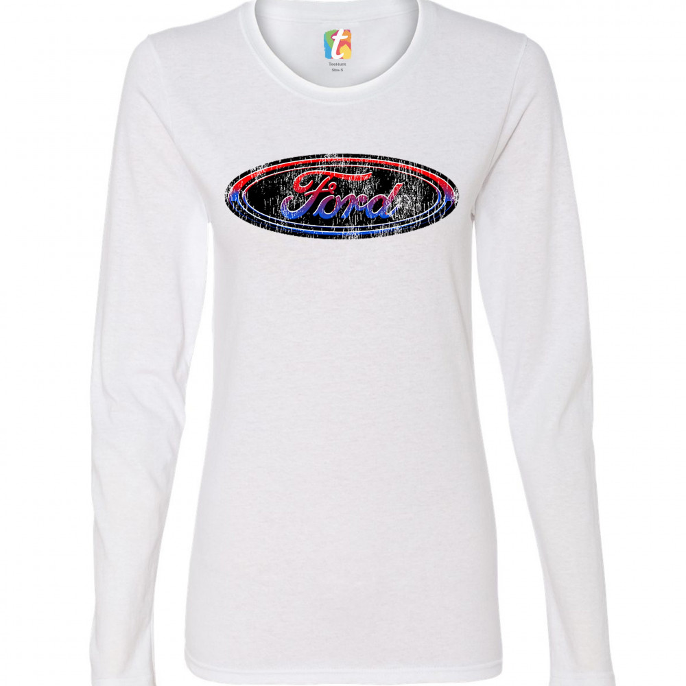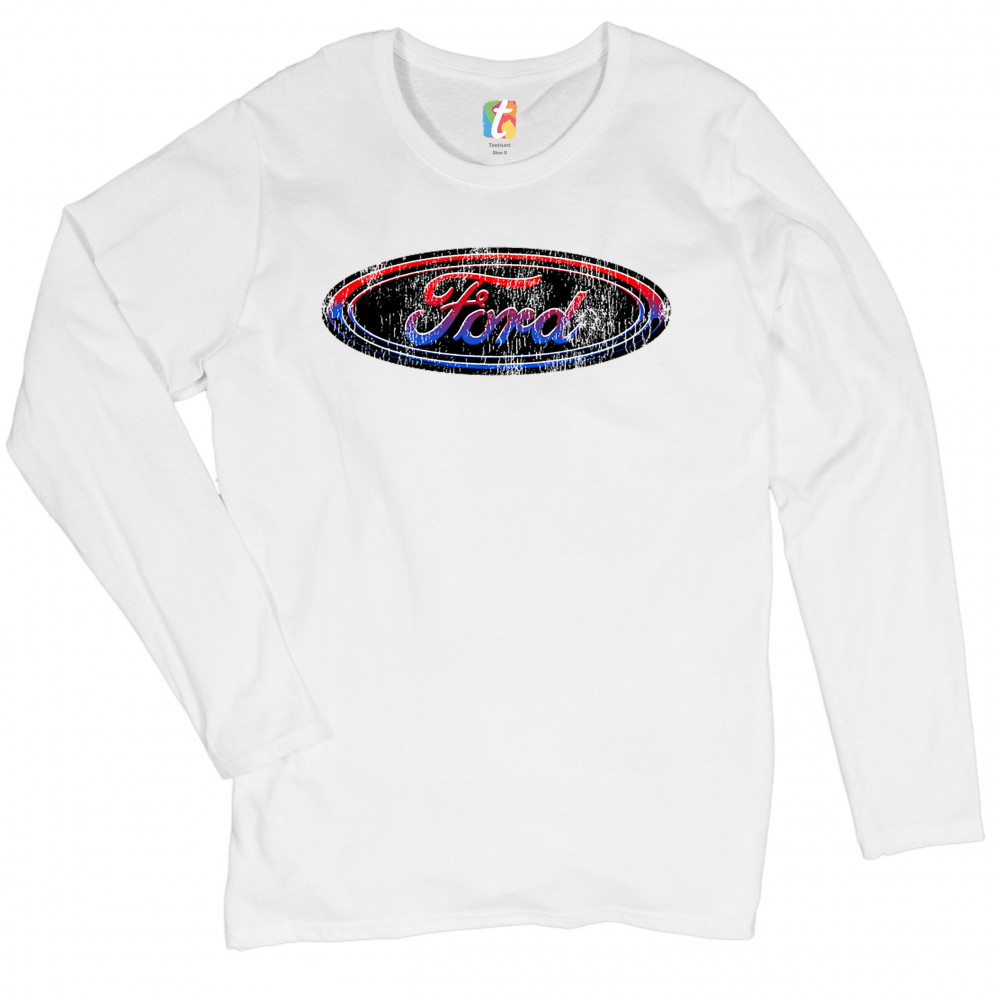 FORD MOTOR COMPANY LOGO women's long sleeve t-shirt american made cars licensed white