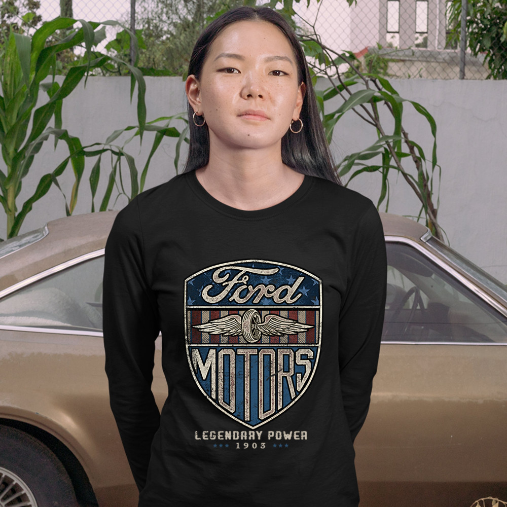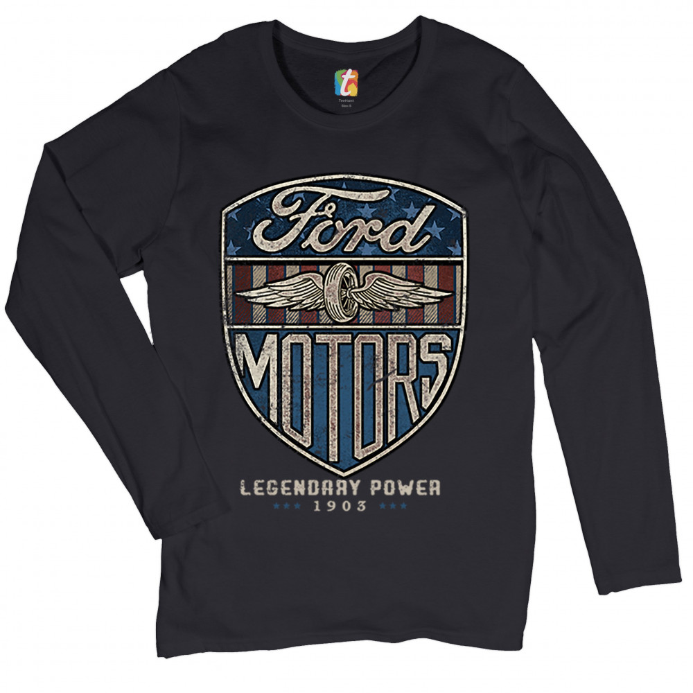 FORD MOTORS LEGENDARY POWER women's long sleeve t-shirt retro fomoco licensed black