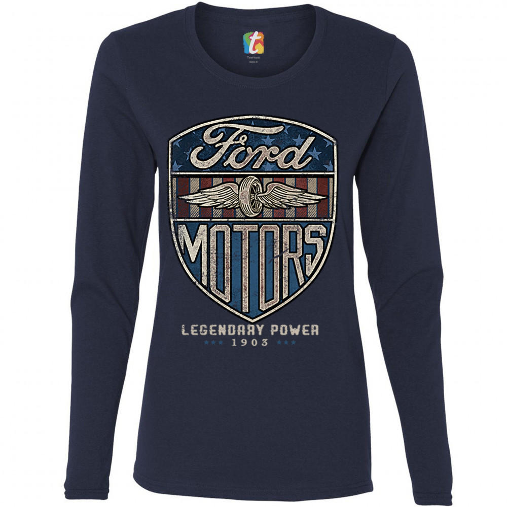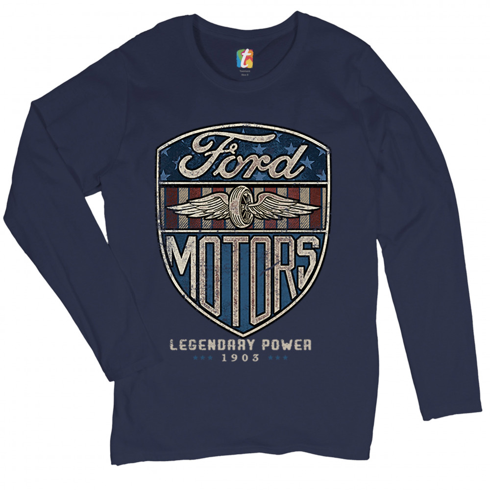 FORD MOTORS LEGENDARY POWER women's long sleeve t-shirt retro fomoco licensed navy blue