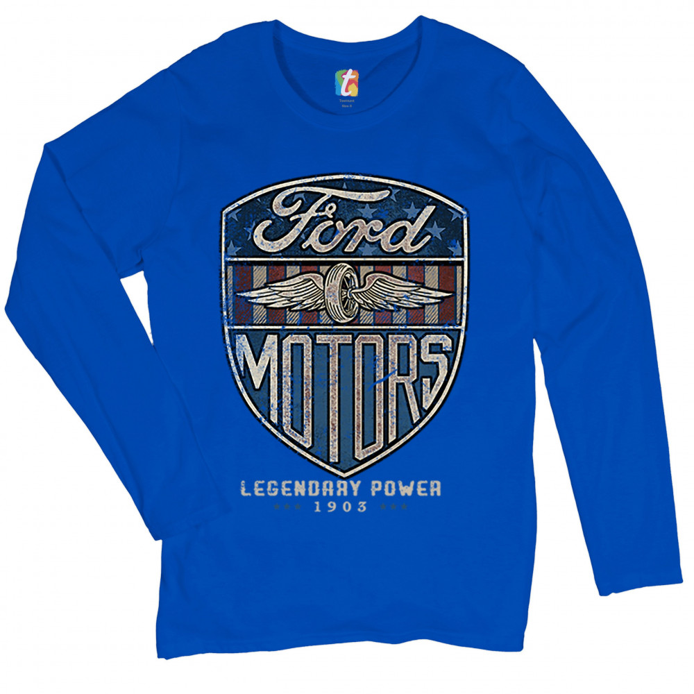 FORD MOTORS LEGENDARY POWER women's long sleeve t-shirt retro fomoco licensed royal blue
