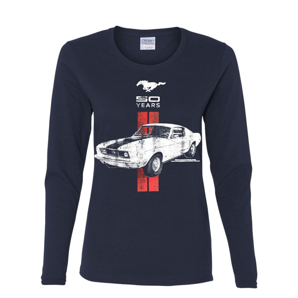FORD MUSTANG 50 YEARS women's long sleeve t-shirt gt boss 302 cobra navy blue