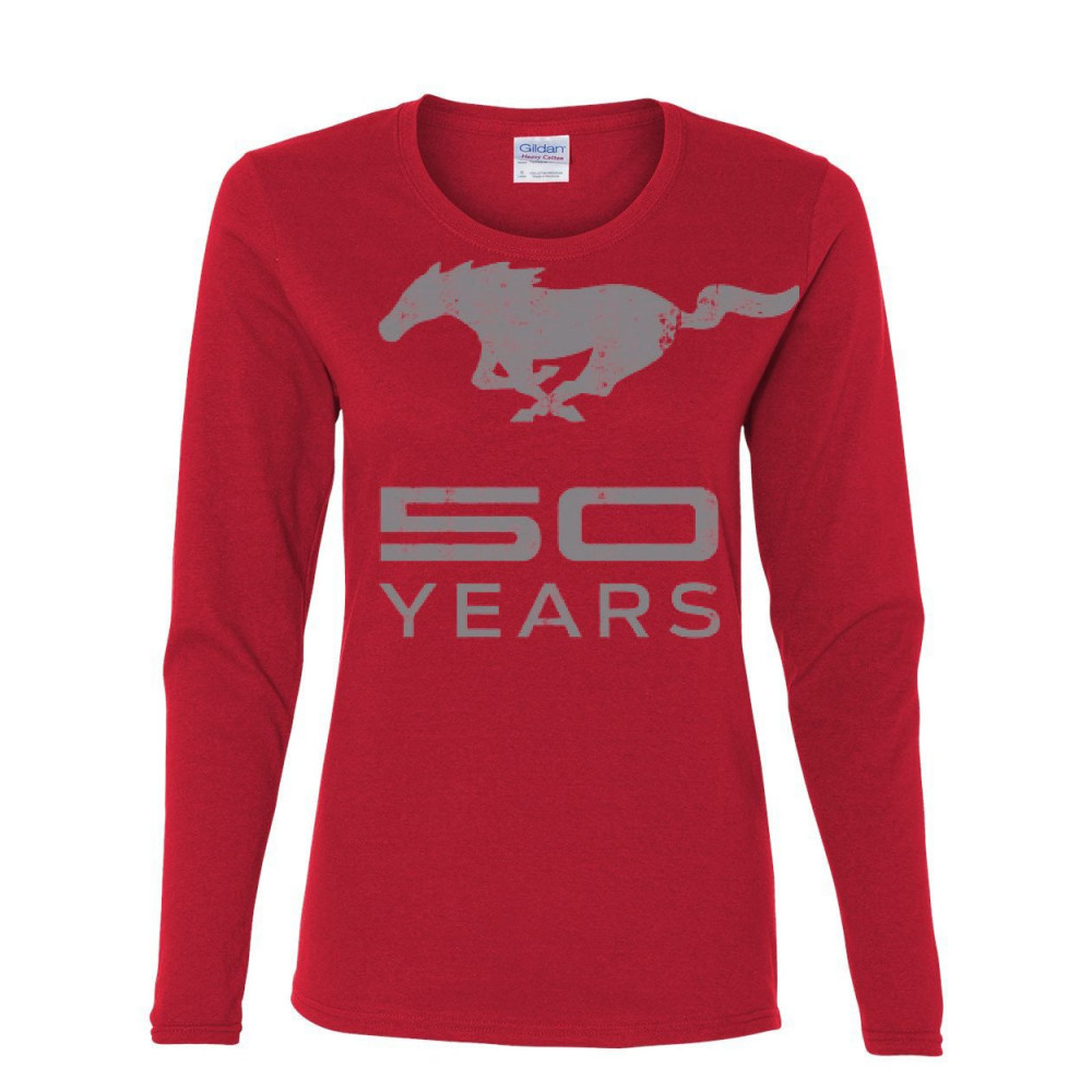 FORD MUSTANG 50 YEARS ANNIVERSARY ford mustang 50 years long sleeve t-shirt anniversary licensed red