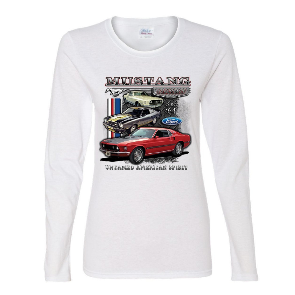 FORD MUSTANG CLASSICS women's long sleeve tee muscle car untamed american spirit white