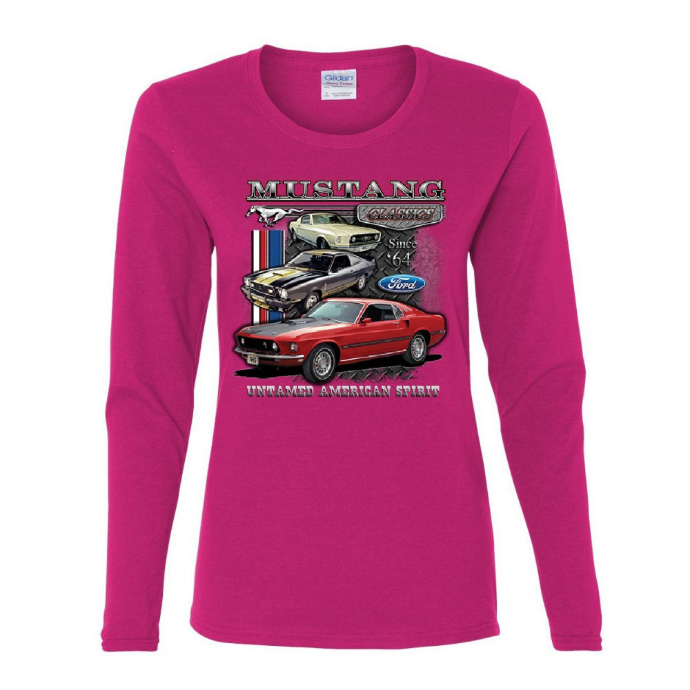 FORD MUSTANG CLASSICS women's long sleeve tee muscle car untamed american spirit pink