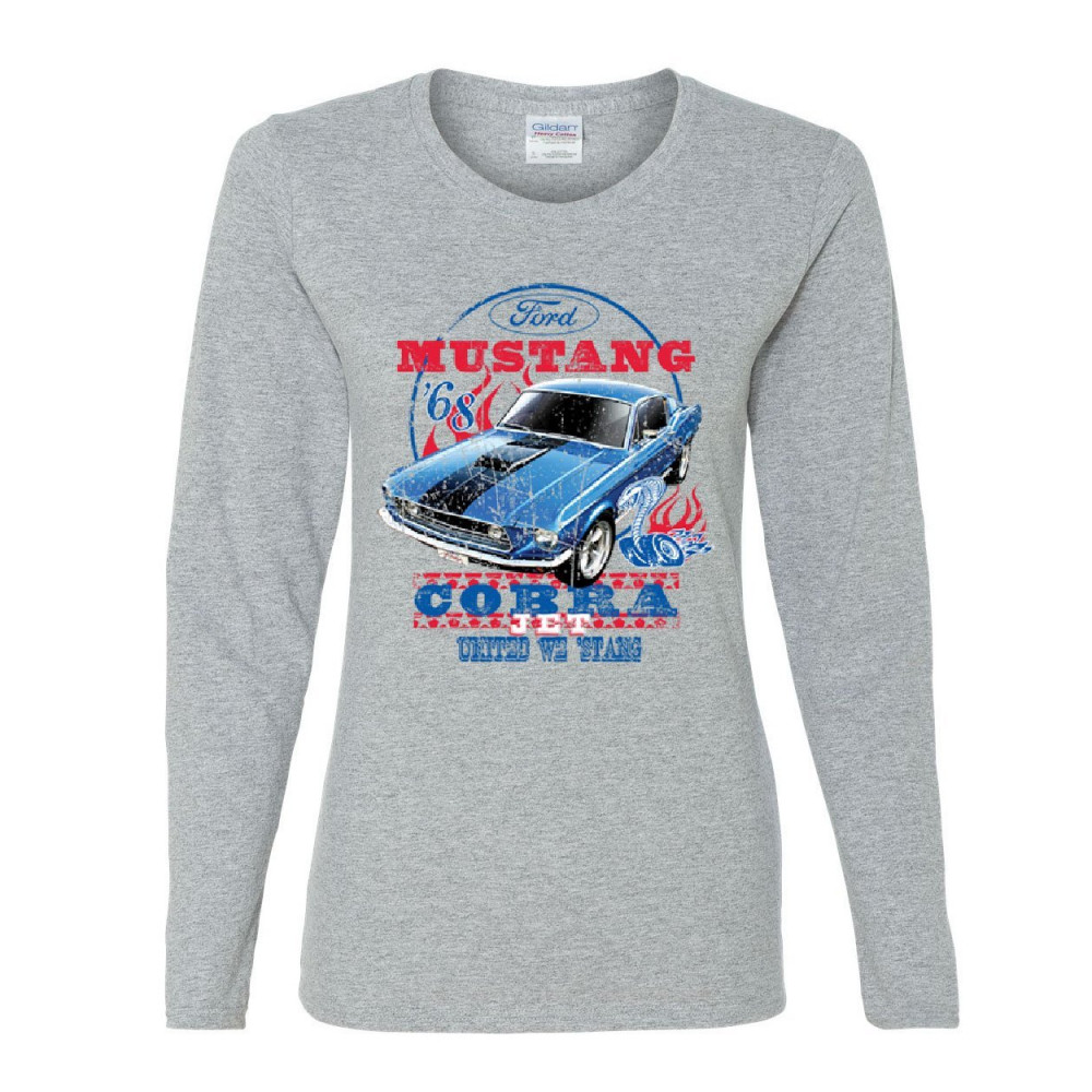 FORD MUSTANG COBRA 1968 women's long sleeve tee united we stang american classic gray