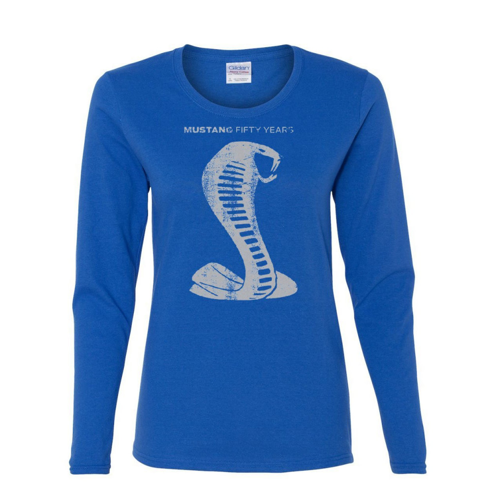 FORD MUSTANG COBRA 50 YEARS women's long sleeve tee american muscle car royal blue