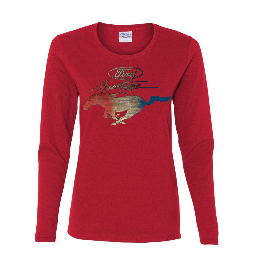FORD MUSTANG LOGO women's long sleeve t-shirt gt shelby cobra boss 302 red