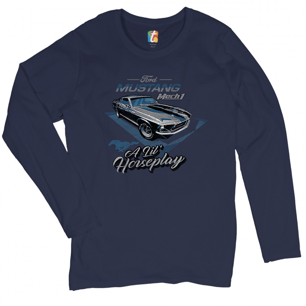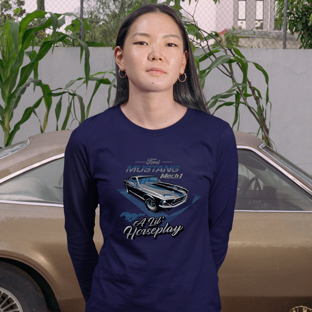 FORD MUSTANG MACH 1 A LIL' HORSEPLAY women's long sleeve t-shirt retro licensed navy blue