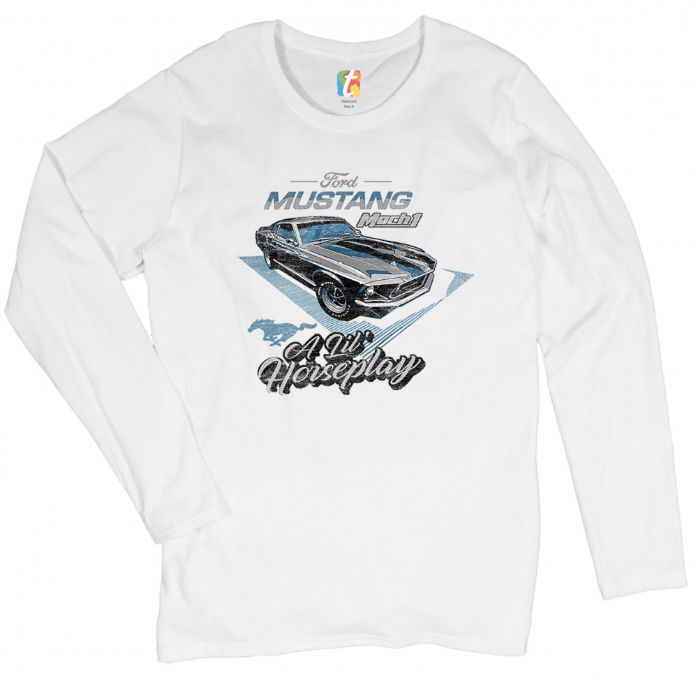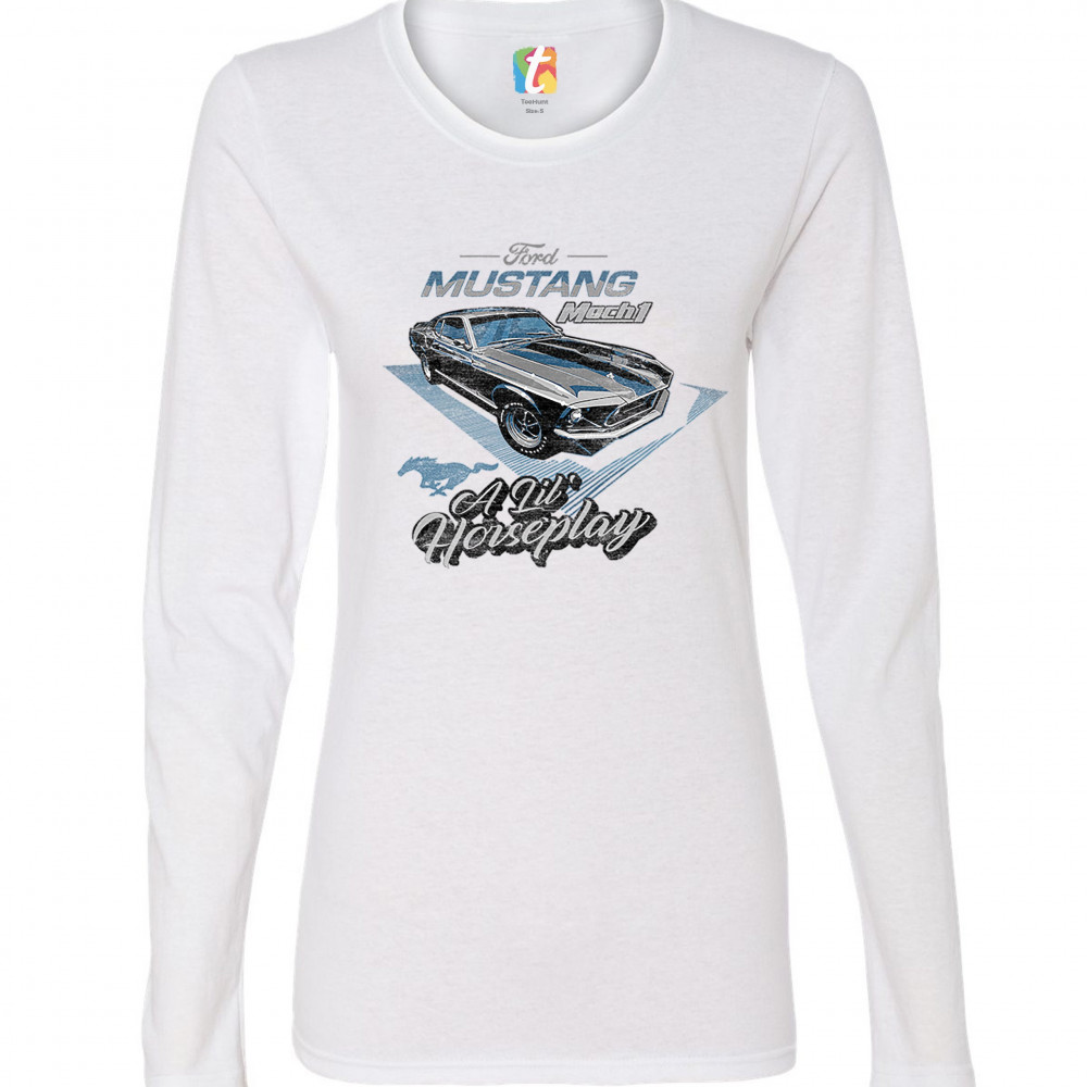 FORD MUSTANG MACH 1 A LIL' HORSEPLAY women's long sleeve t-shirt retro licensed white
