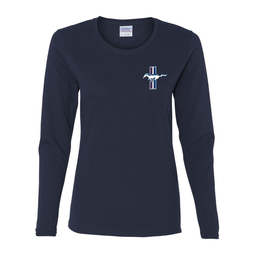 FORD MUSTAND THE LEGEND LIVES LOGO women's long sleeve tee classic muscle cars navy blue