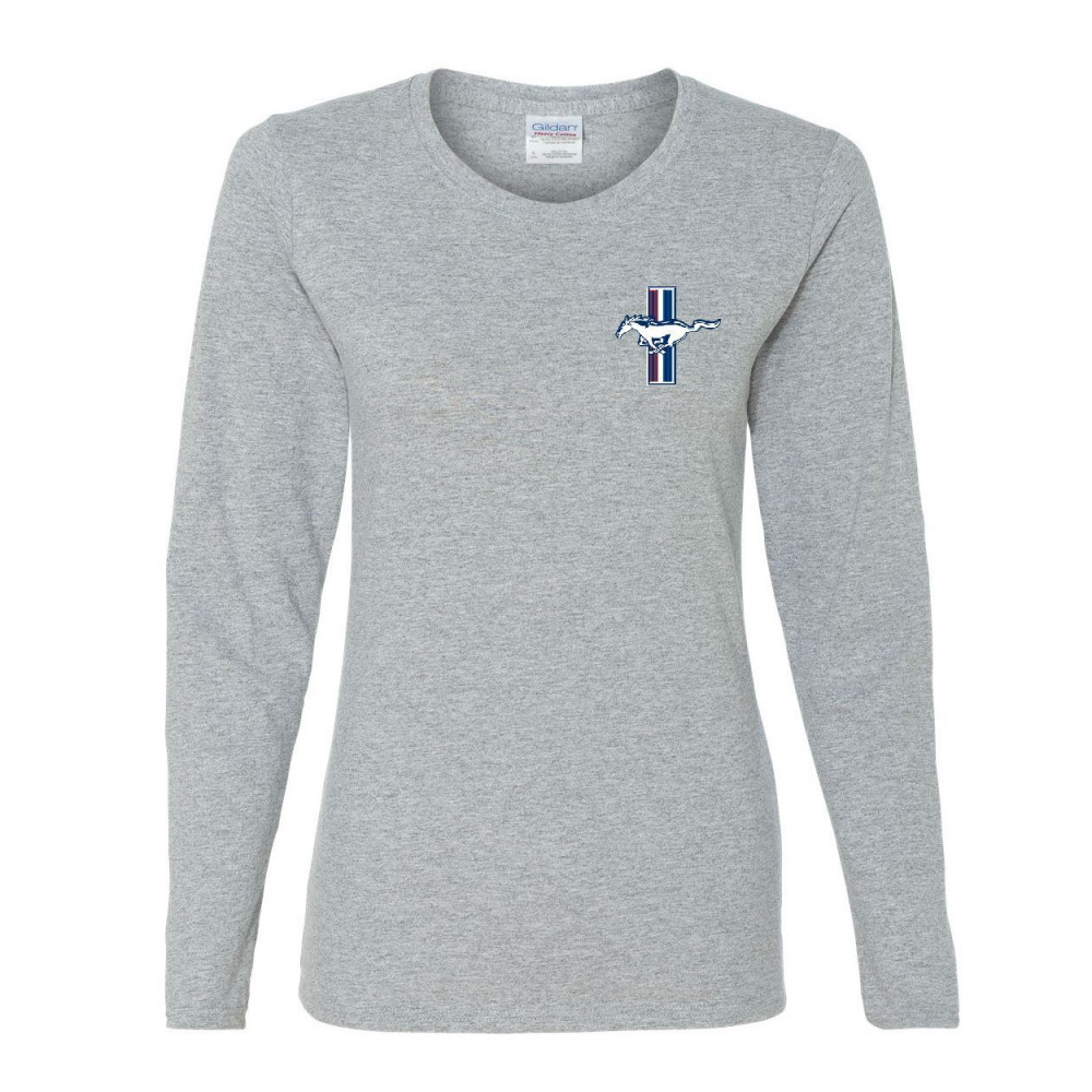 FORD MUSTAND THE LEGEND LIVES LOGO women's long sleeve tee classic muscle cars gray