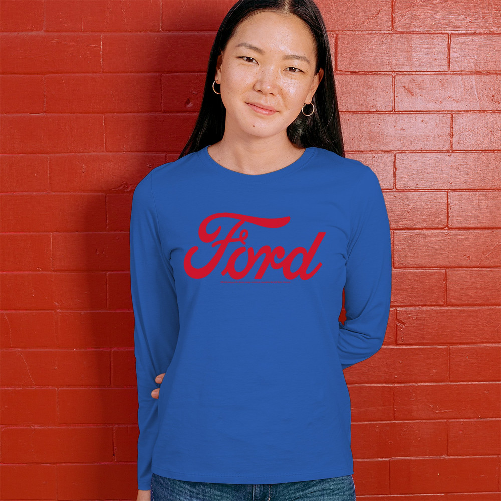 Celebrate American automotive history with this officially licensed Ford script logo design. Rendered in bold red, it honors the legacy of Ford’s muscle car era and modern performance culture. Ideal for collectors, drivers, and auto fans at meets, garages, or everyday wear with pride.
