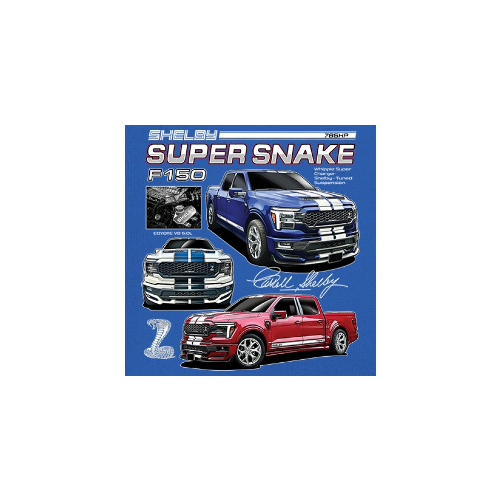 Ford Shelby Super Snake F-150 design featuring 785HP supercharged V8, Shelby pickup heritage, Shelby American truck power, and off-road muscle.