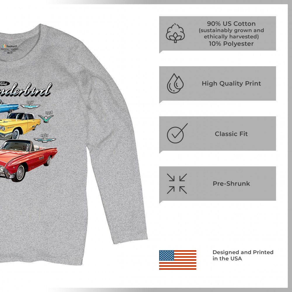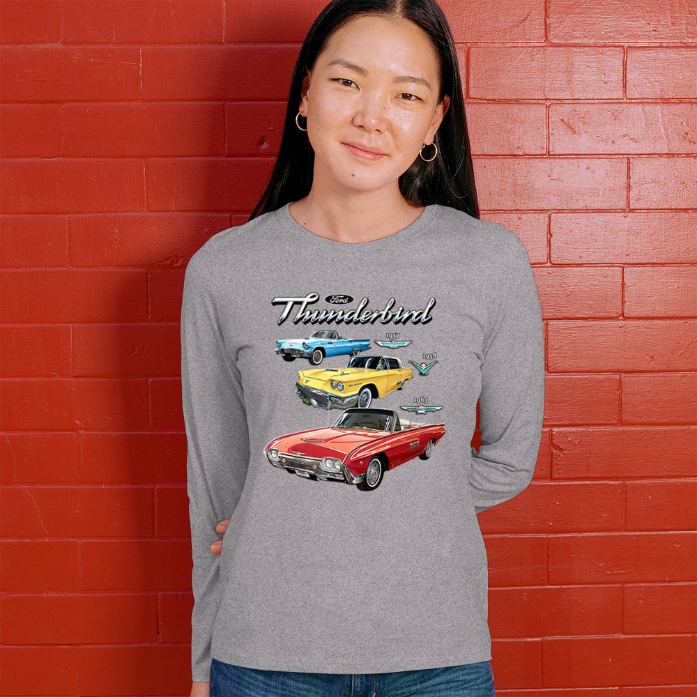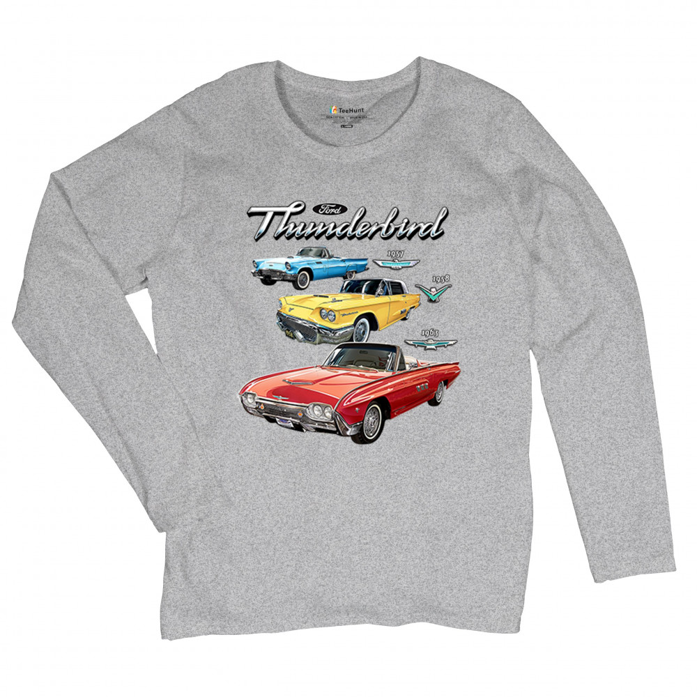 Iconic Ford Thunderbird design with 1957, 1958, and 1963 models. A vintage tribute for car collectors and American muscle fans.