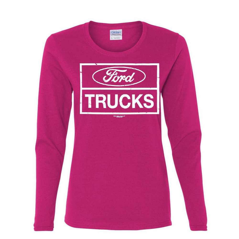 DISTRESSED FORD TRUCKS women's long sleeve t-shirt f150 pink