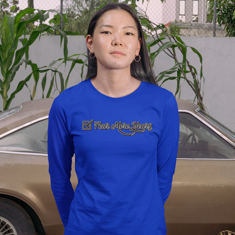 FOUR MORE YEARS women's long sleeve t-shirt donald trump for president 2020 royal blue