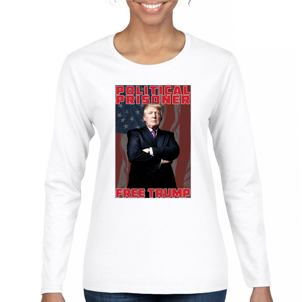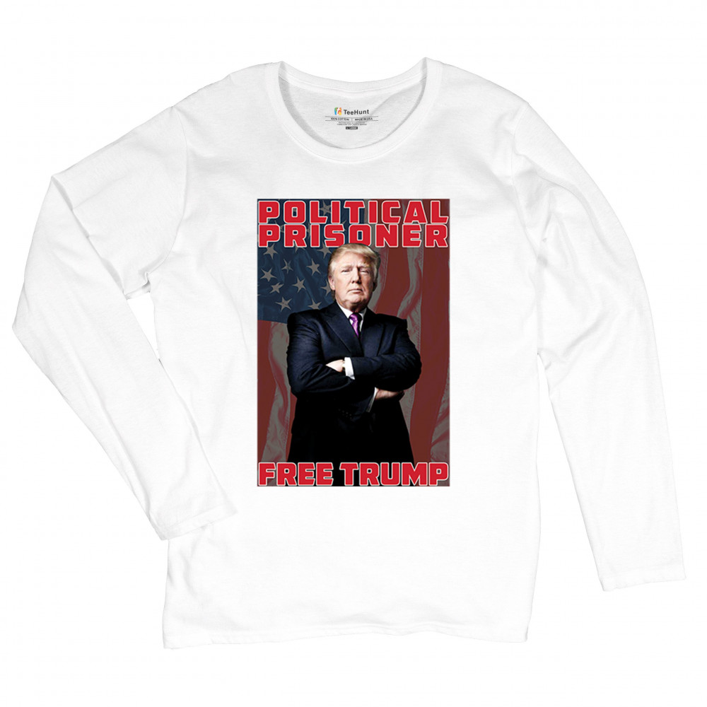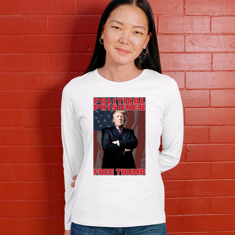 Show your support with the "Political Prisoner Free Trump" design, featuring Trump against an American flag. Perfect for conservative patriots and Trump supporters.