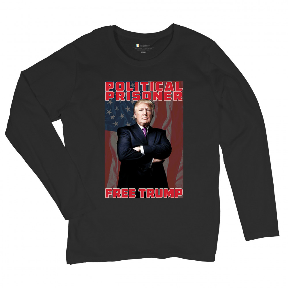 Show your support with the "Political Prisoner Free Trump" design, featuring Trump against an American flag. Perfect for conservative patriots and Trump supporters.