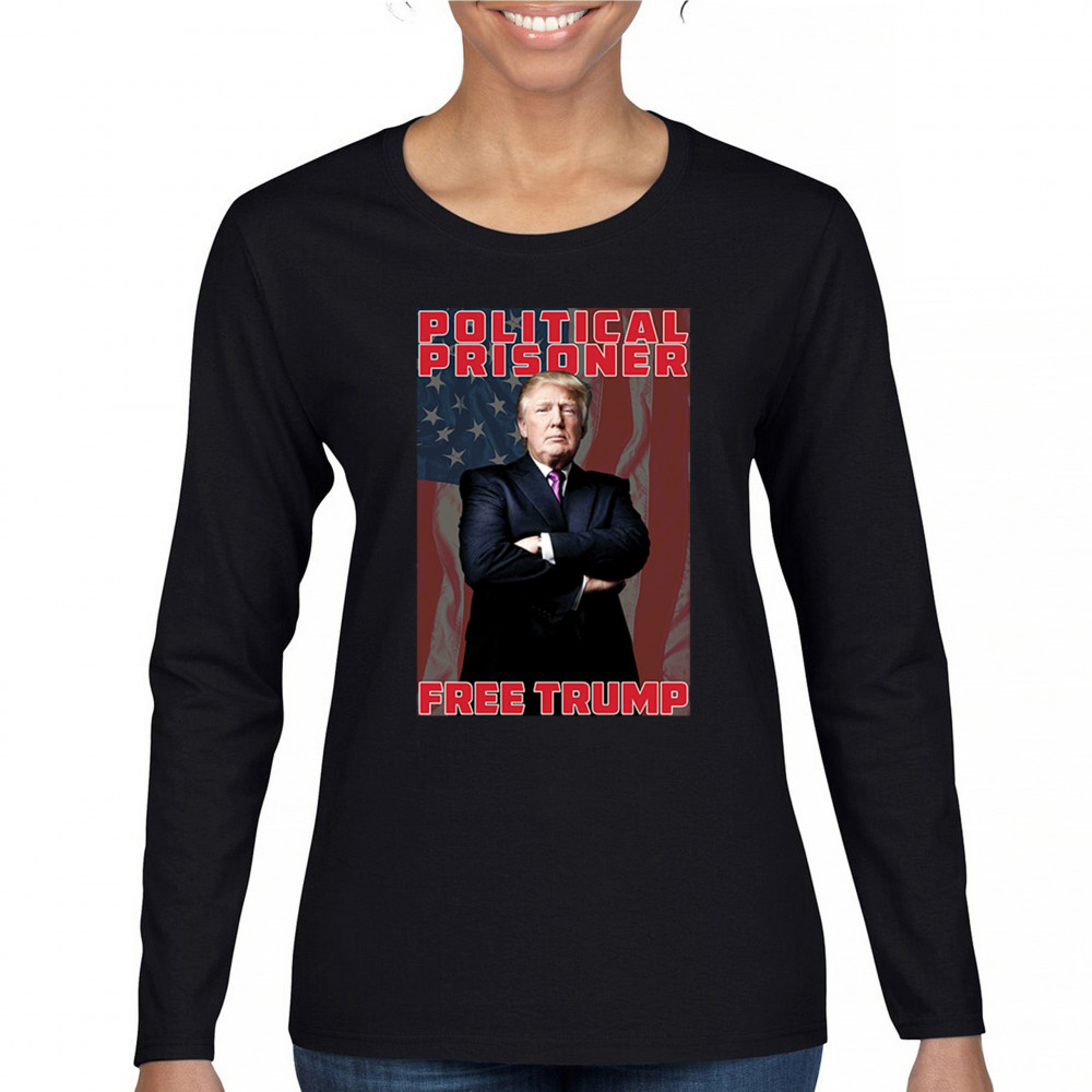 FREE TRUMP 2024 POLITICAL PRISONER free trump 47 political prisoner women's long sleeve t-shirt maga america first black
