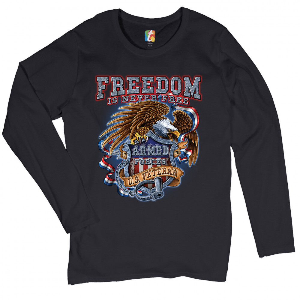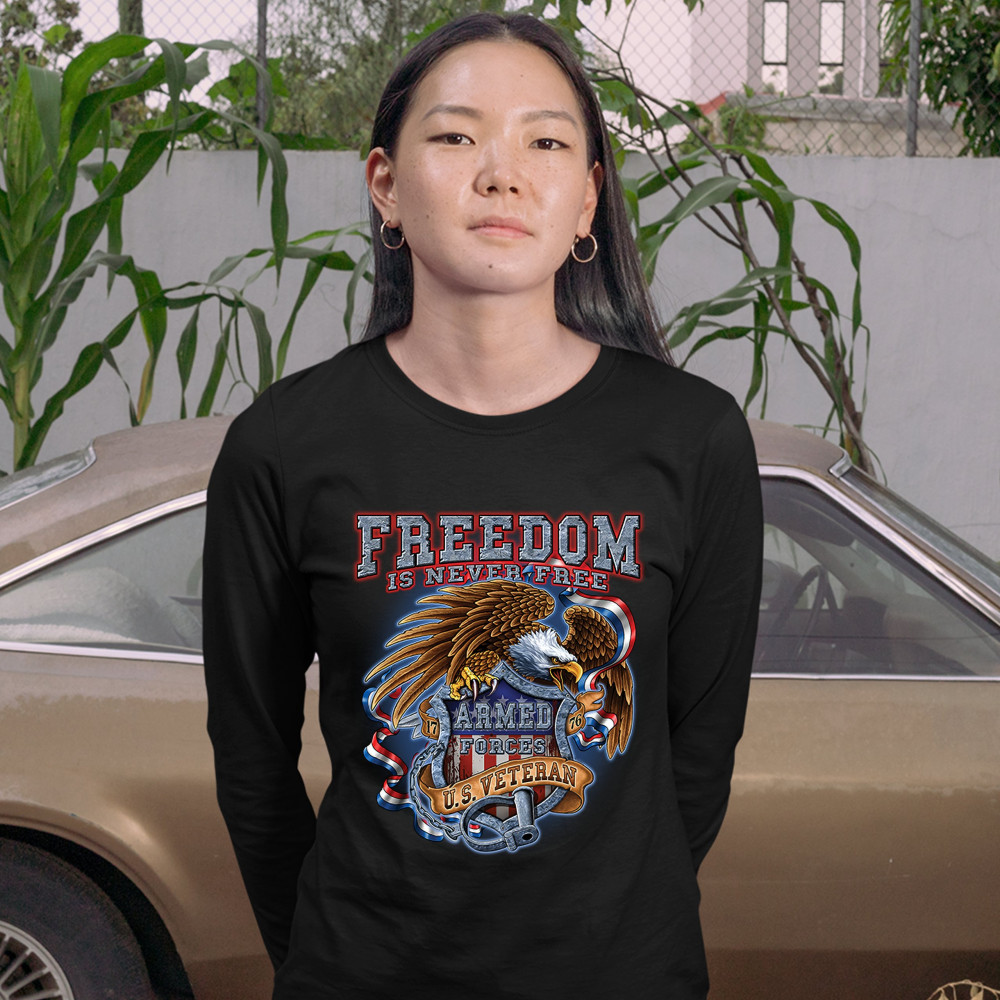 FREEDOM IS NEVER FREE women's long sleeve t-shirt u.s. veteran armed forces black