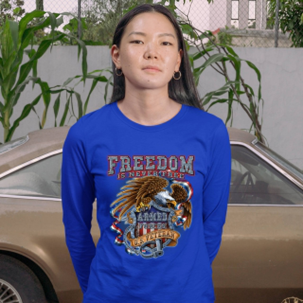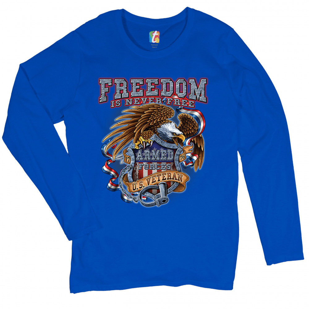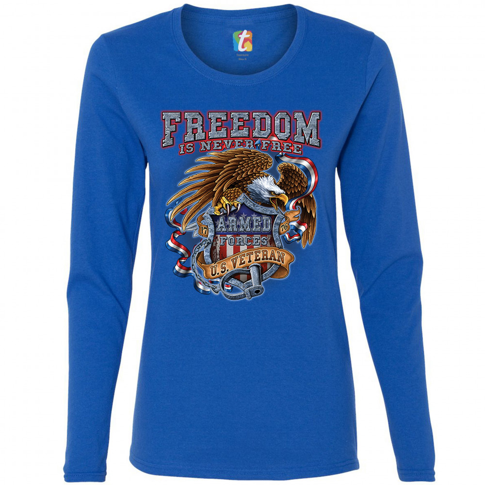 FREEDOM IS NEVER FREE women's long sleeve t-shirt u.s. veteran armed forces royal blue
