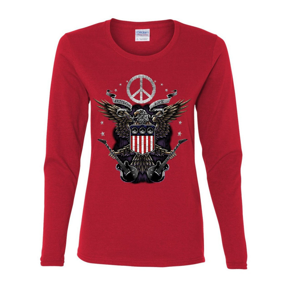 FREEDOM ROCK women's long sleeve tee peace american flag bald eagle 4th of july red