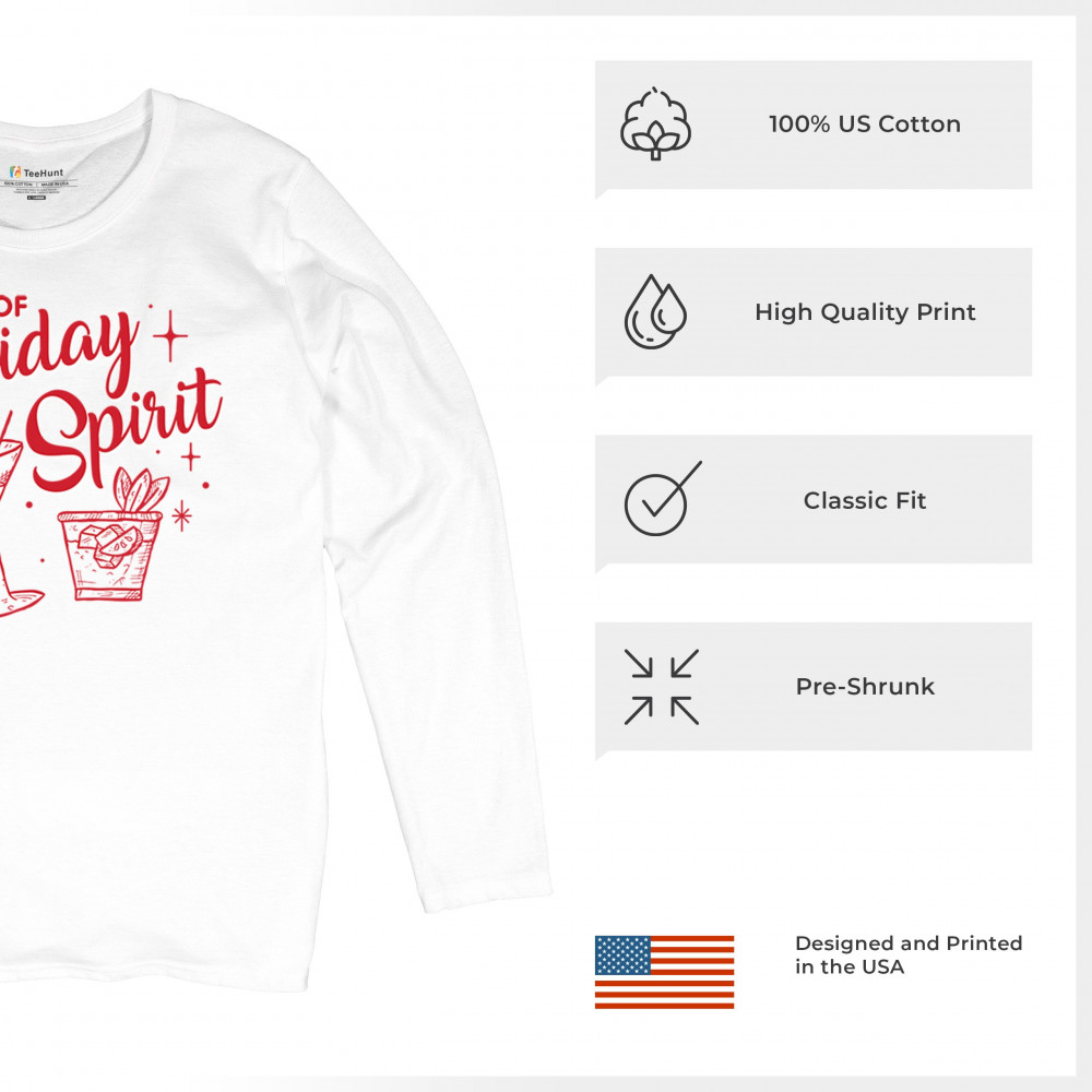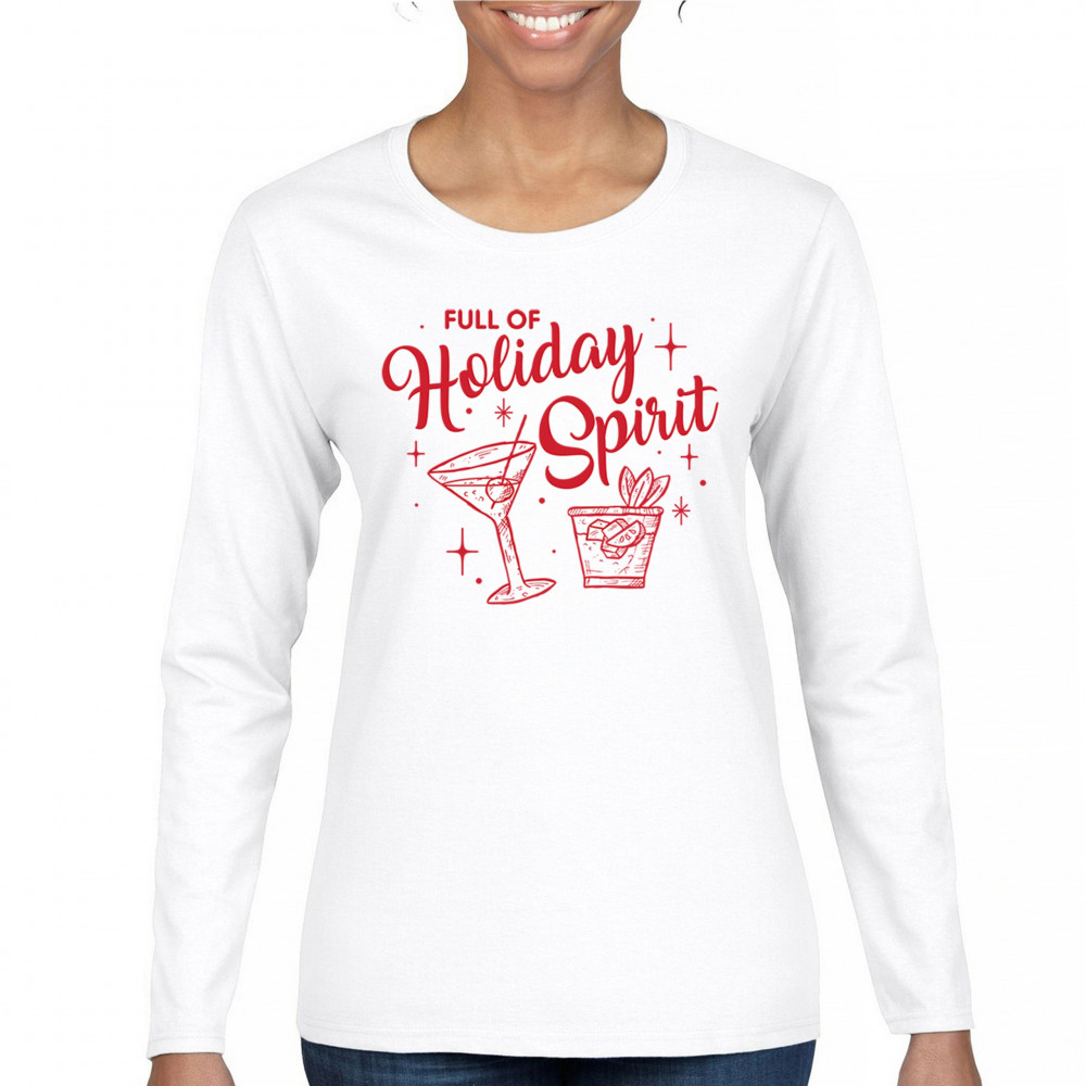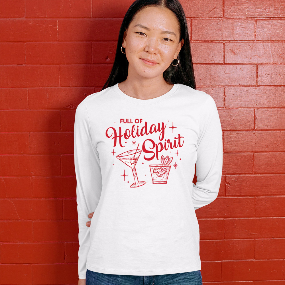 Bring the festive vibes to your holiday season with the "Full of Holiday Spirit" design. This playful print is perfect for office parties, secret Santa gifts, and cozy gatherings, adding a fun and jolly touch to any holiday event. Ideal for matching pajamas, ugly sweater contests, or as a unique present, it’s crafted to spread cheer and humor. From Xmas morning to holiday parties, this design is all about making merry memories with a festive flair.