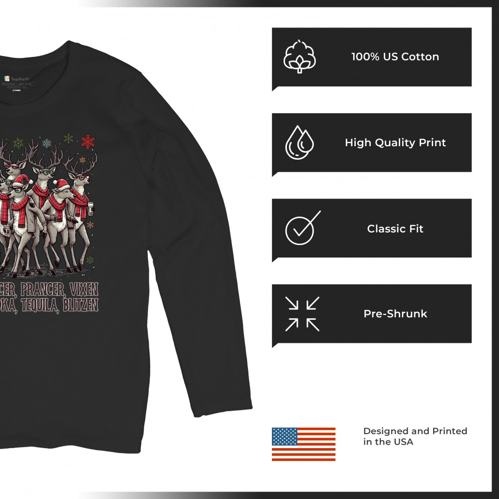 Funny drinking-reindeer Christmas design perfect for parties, bar crawls, and festive adult humor. Great for holiday laughs and spirited winter fun.
